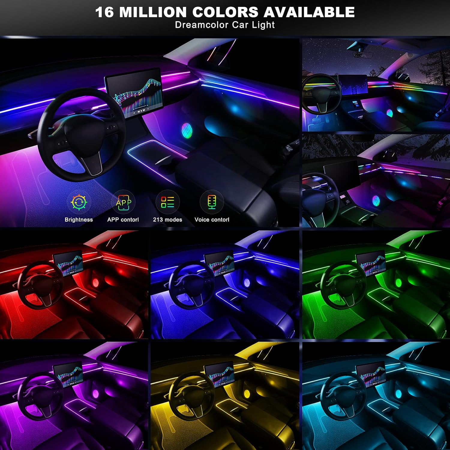 Dreamcolor Acrylic Interior Car LED Strip Light with Wireless APP, RGB 22 in 1 with 175 inches 612 LEDs Fiber Optic Strip Lights for Car, Dual Zone Music Sync Neon Car Ambient Lighting Kits