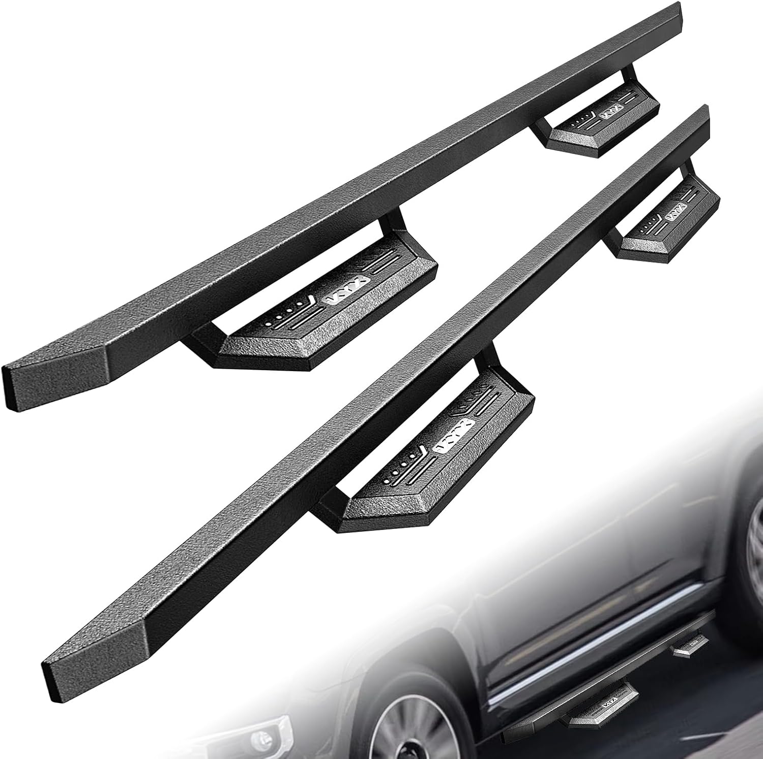 - 【PATENTED DESIGN】Exclusive design provides an extraordinary appearance for your vehicle and convenience for getting on/off the car with an extra step area and proper ground clearance