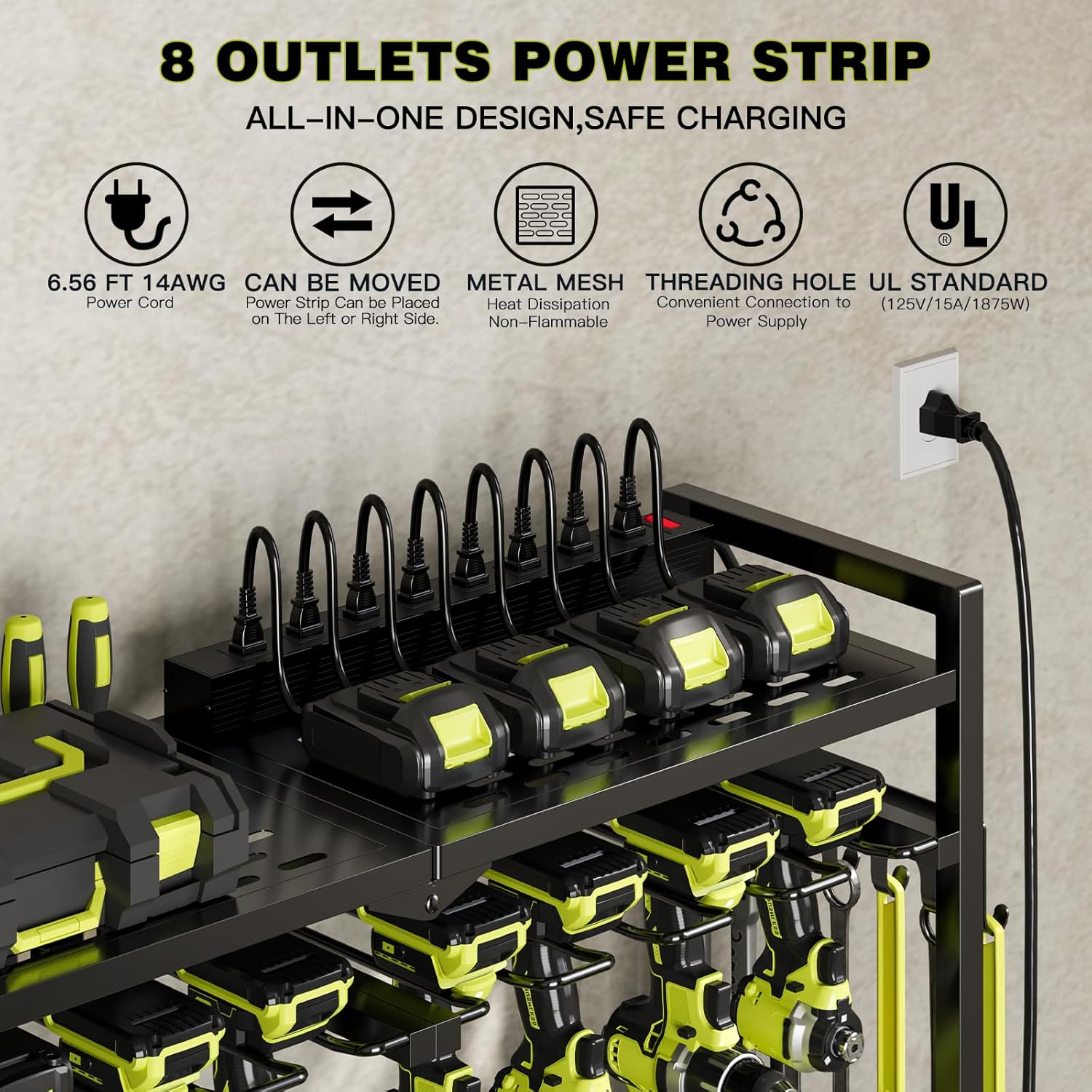 - 8 Outlet Power Strip for Charging – The tool organizer cart features an 8-outlet, so you can charge your power tools all in one place. It’s simple to assemble, and the sturdy, stable design ensures long-lasting use