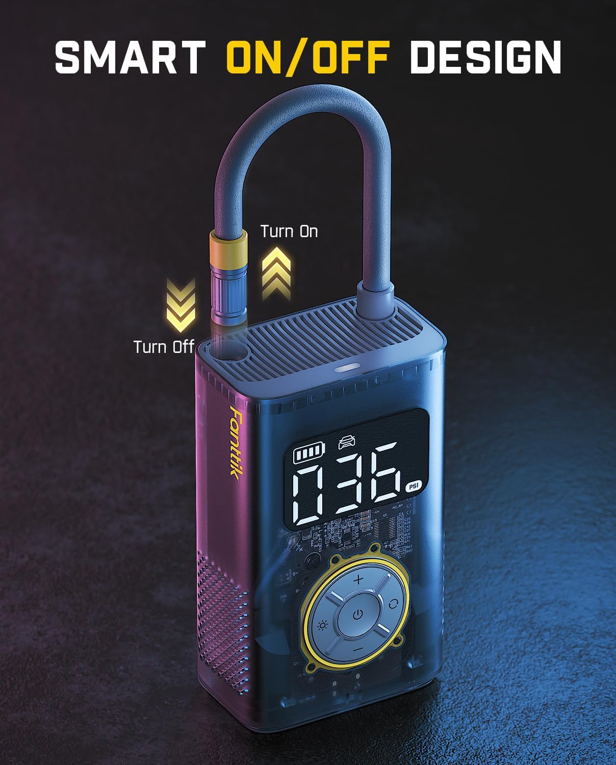 - 1 Min Jet-inflate: the Fanttik X9 Pro needs only 1 min to refill a compact cars tire ( from 30 to 35 PSI); It can reach a versatile maximum inflation pressure of 150 PSI, optimized for compact cars, motorcycles, SUVs, bicycles, balls, and other inflatables