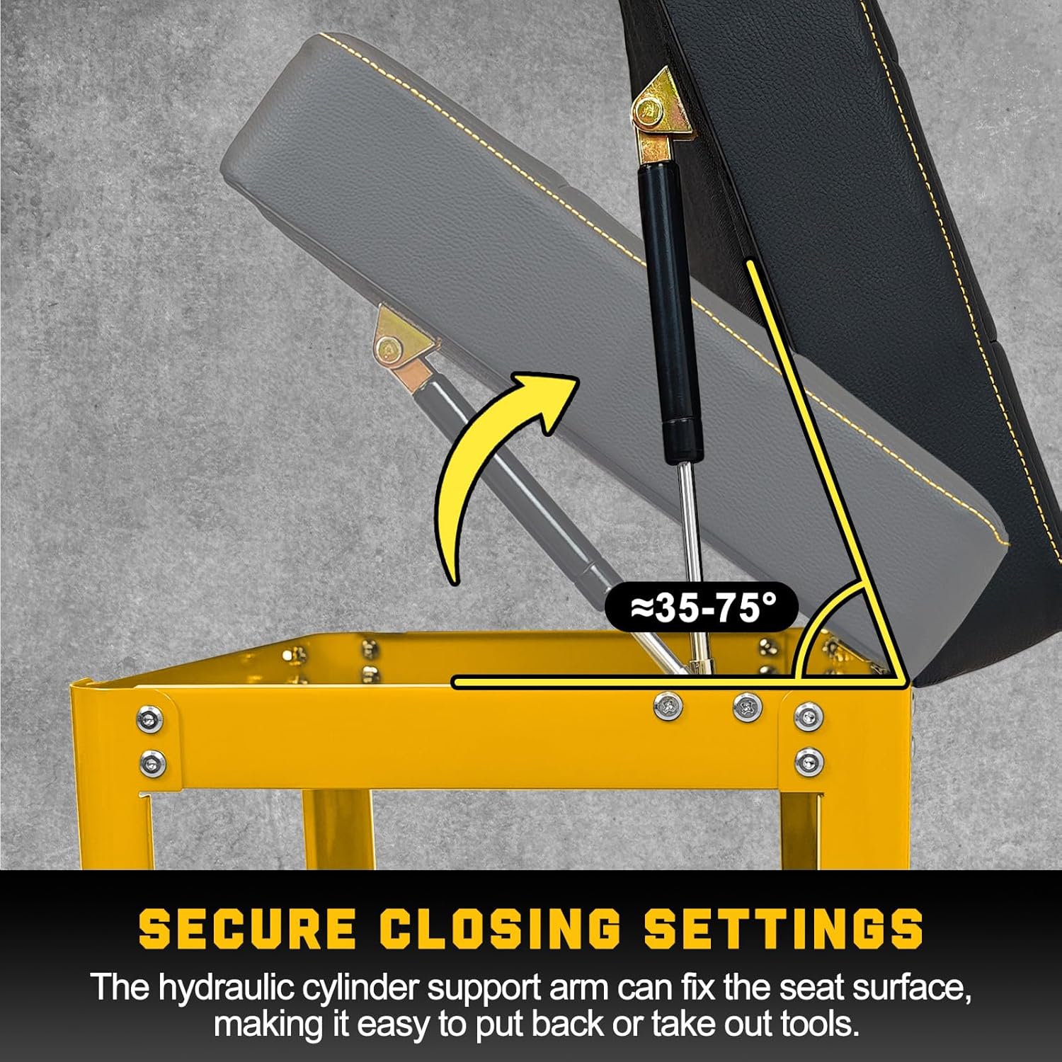 - Detailed Design: The work shop stool is equipped with removable cup & tools holder, which can be installed on the left or right side of the stool according to your needs, allowing you to quickly reach tools. It also features a pneumatic telescopic support rod, which assists you in storing and retrieving tools with one hand.