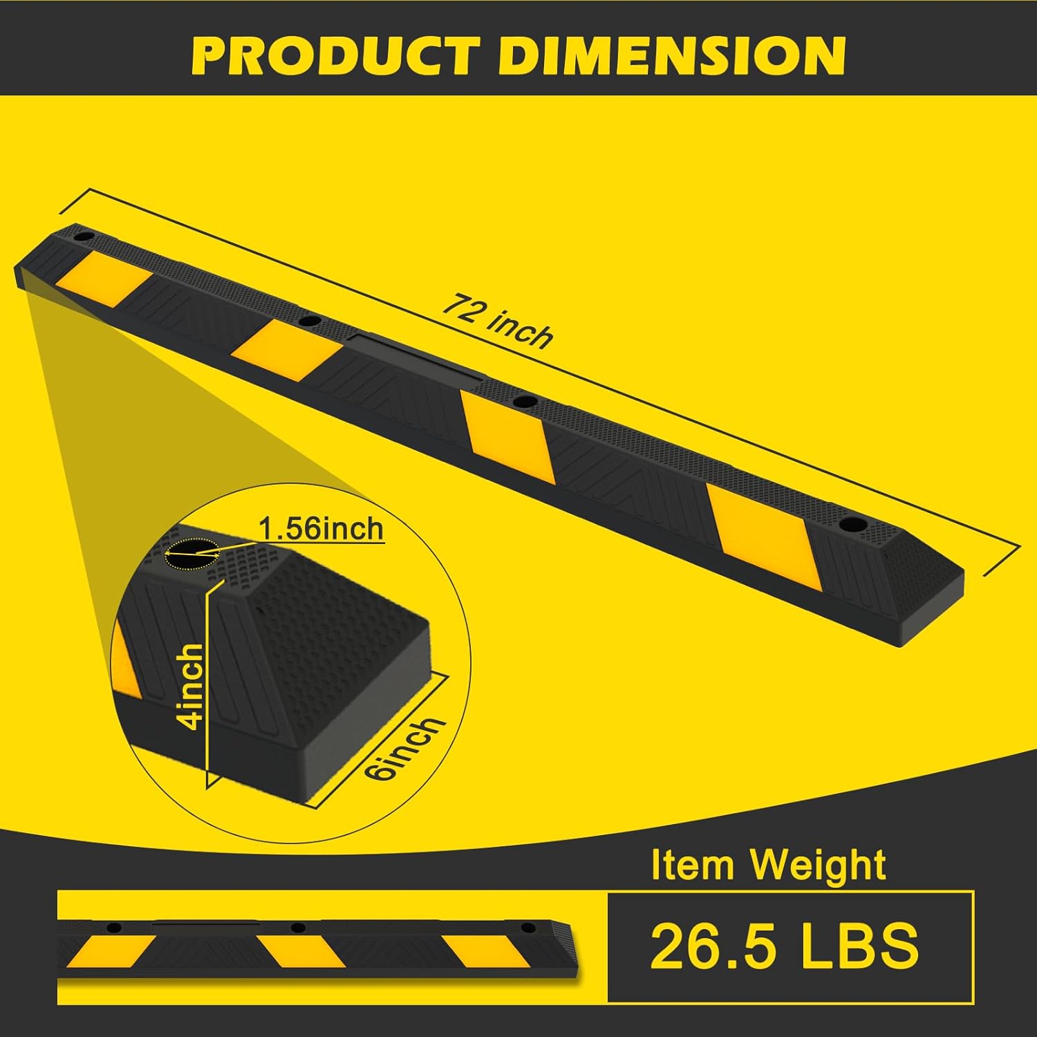 - Safety Upgrade: Rubber parking curbs are more effective in preventing tires from rolling over parking stops and avoiding collisions with walls or other parked vehicles. They better secure cars to the ground, making every parking experience safer. Product Size: 72βx 6βx 4β