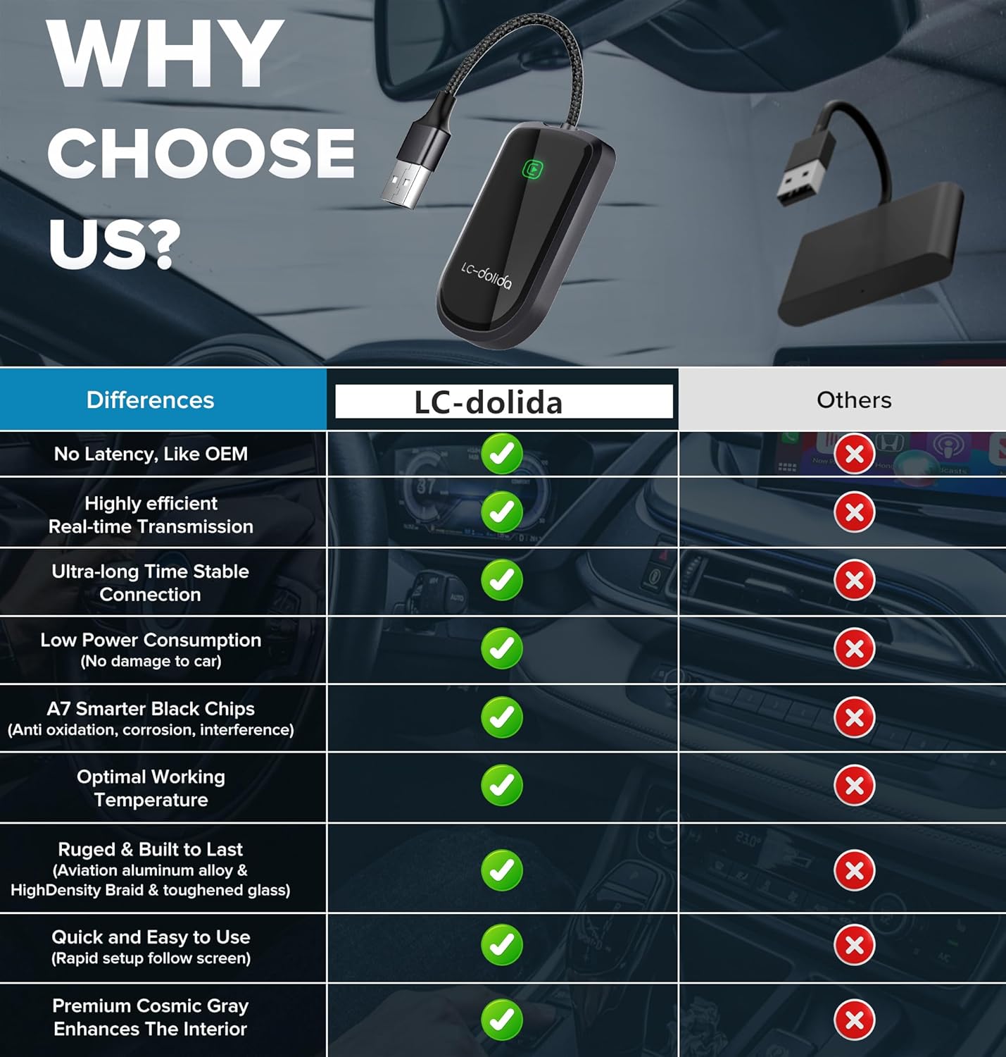 LC-dolida Wireless CarPlay Adapter for Apple -Convert Wired to Wireless Adapter Dongle Cars, Plug and Play for iOS 10+&Cars 2017