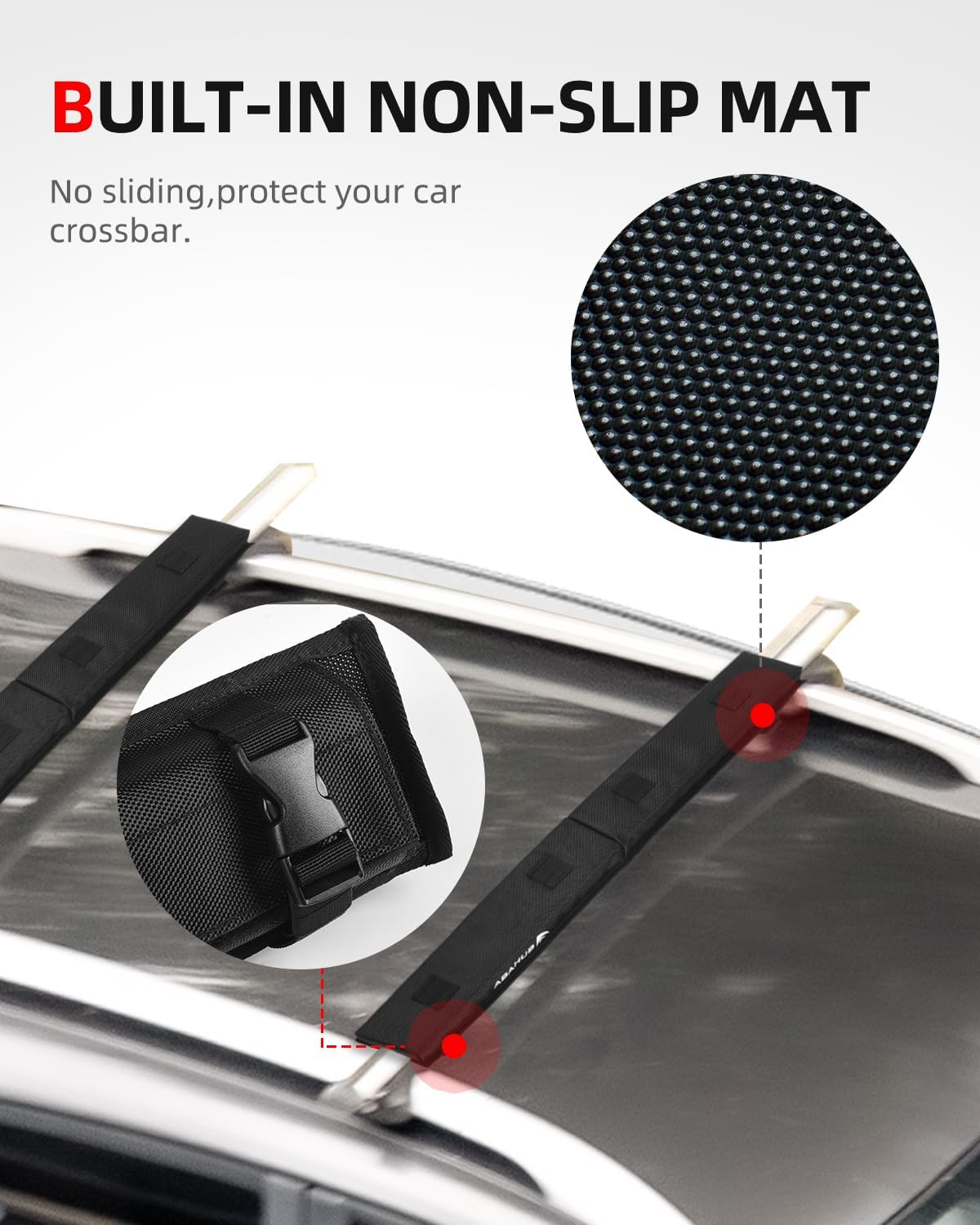 Abahub Soft Roof Rack Pads with 2 Tie Down Straps, 2 Tie Down Ropes, 2 Hood Loops and Storage Bag, for Surfboard, Kayak, Canoe, Heavy Duty Universal Car Roof Racks System (Use with Cross Bar)