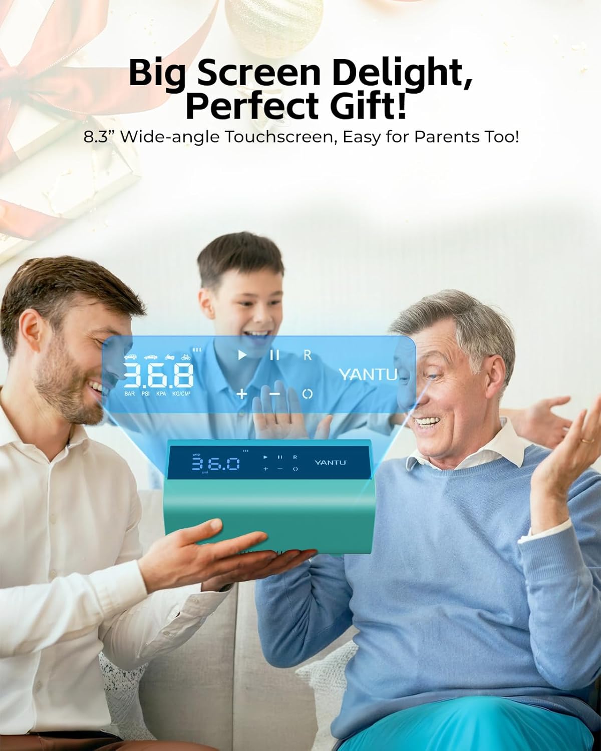 YANTU Cordless Tire Inflator with Dual-Cylinder & 8.3" Large Screen-Portable Air Compressor for Car Tires,12V Rechargeable,Tire Pressure Gauge,Up to 150 psi, Auto/Bicycle/Moto/Truck Use