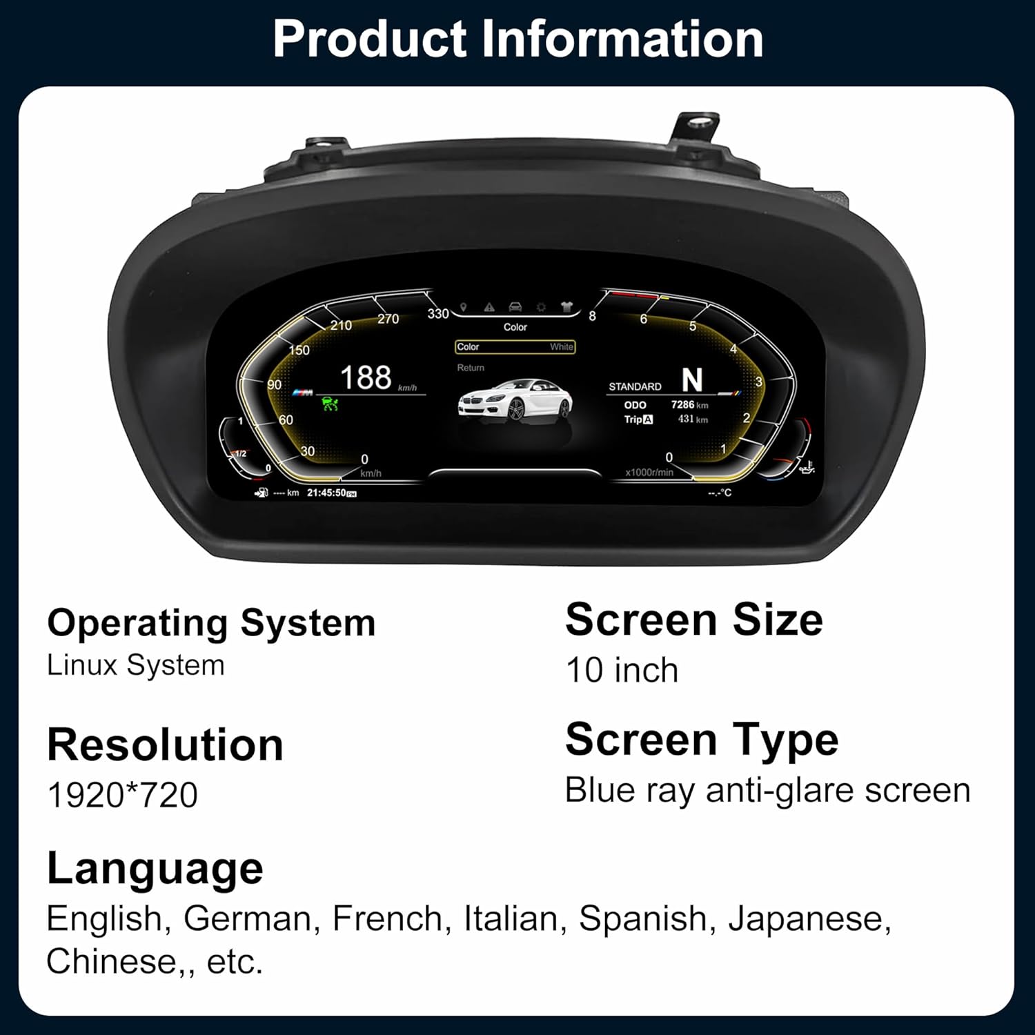 - π[Applicable Models] The LCD digital instrument cluster is precisely customized for BMW E87 (2006-2011) CCC CIC system. It is equipped with a 10 inch high-definition screen boasting a resolution of 1920*720. Supports all original features