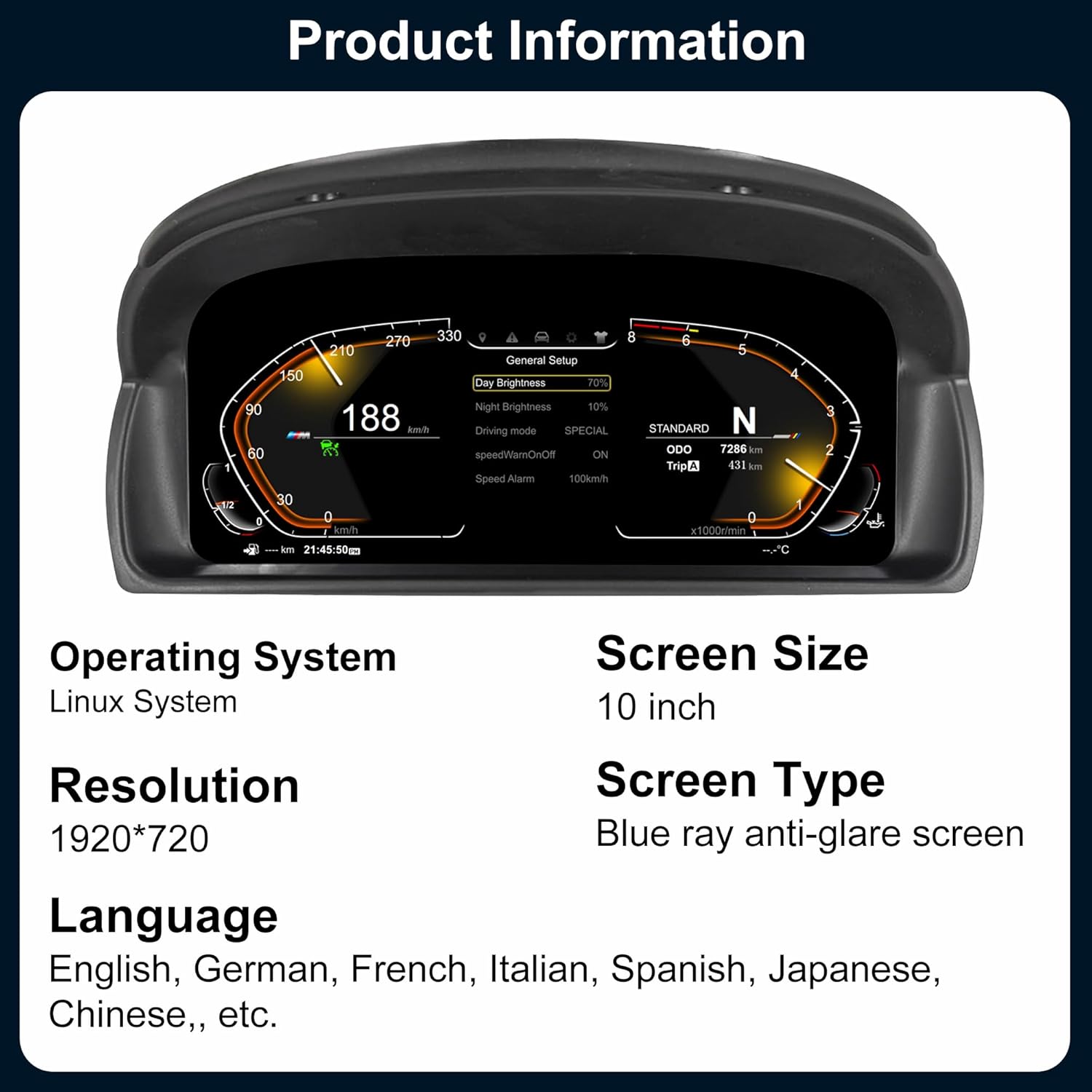 - π[Applicable Models] The LCD digital instrument cluster is precisely customized for BMW E84 (2006-2015) CCC CIC system. It is equipped with a 10 inch high-definition screen boasting a resolution of 1920*720. Supports all original features
