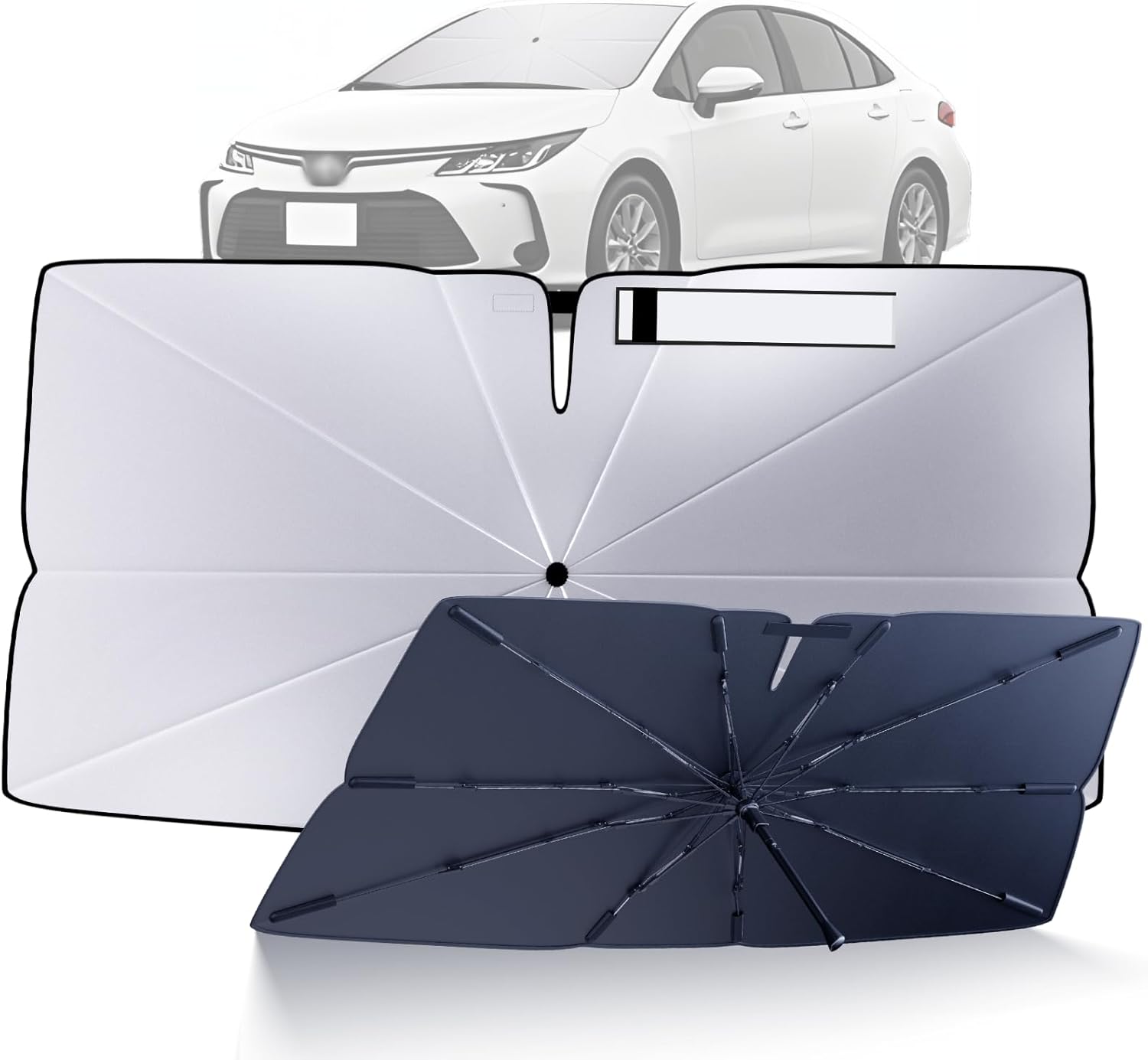 - Quick Installation and Portability for Toyota Corolla: This Toyota Corolla windshield sun shade umbrella provides instant shade and UV protection for your Toyota Corolla. Its compact, foldable design fits neatly in the side storage, ensuring your Toyota Corolla is always ready for sun protection. Perfect for every Toyota Corolla owner, keeping your vehicle cool and protected.