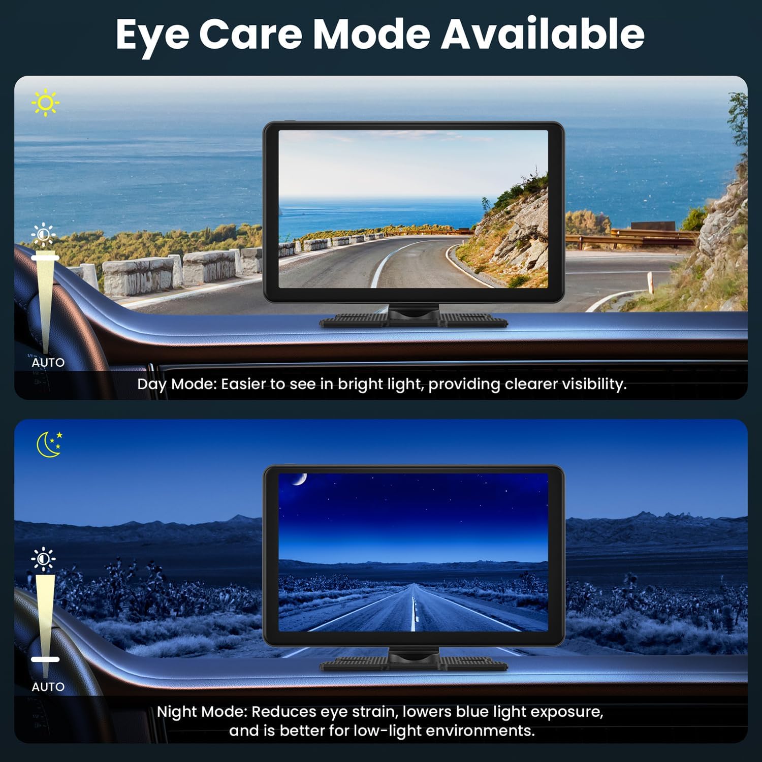 - 【Easy to Install and Use】No tools required, easy to install with a very secure external bracket. This CarPlay and Android Auto wireless HD screen works with 12-24V for almost all cars, SUV, pickups, trucks and lorry.