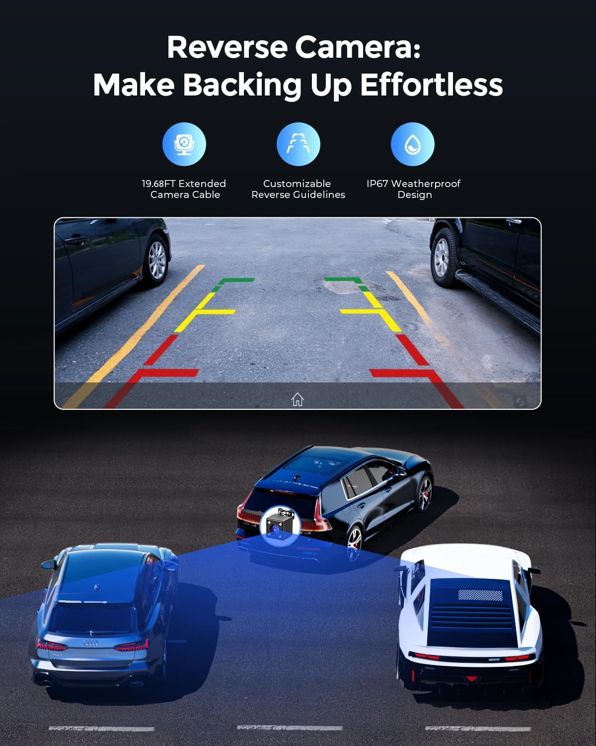 - Intelligent Rearview Assistance: Enhance safety with a 4-LED rear camera that provides clear, bright visibility when reversing. The camera automatically activates when you shift into reverse