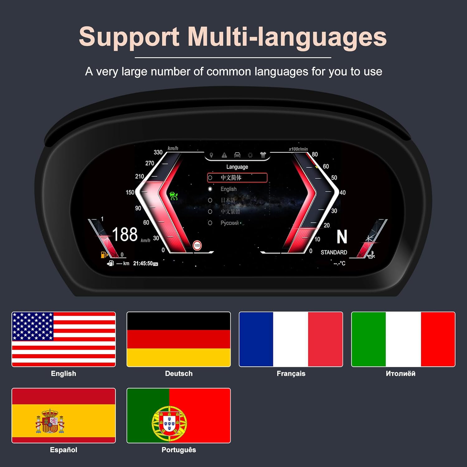 - π¨[Note] This digital display speedometer supports switching between miles and kilometers and offers support for eight languages. It also supports original car control and is compatible with the original car's cruise control function