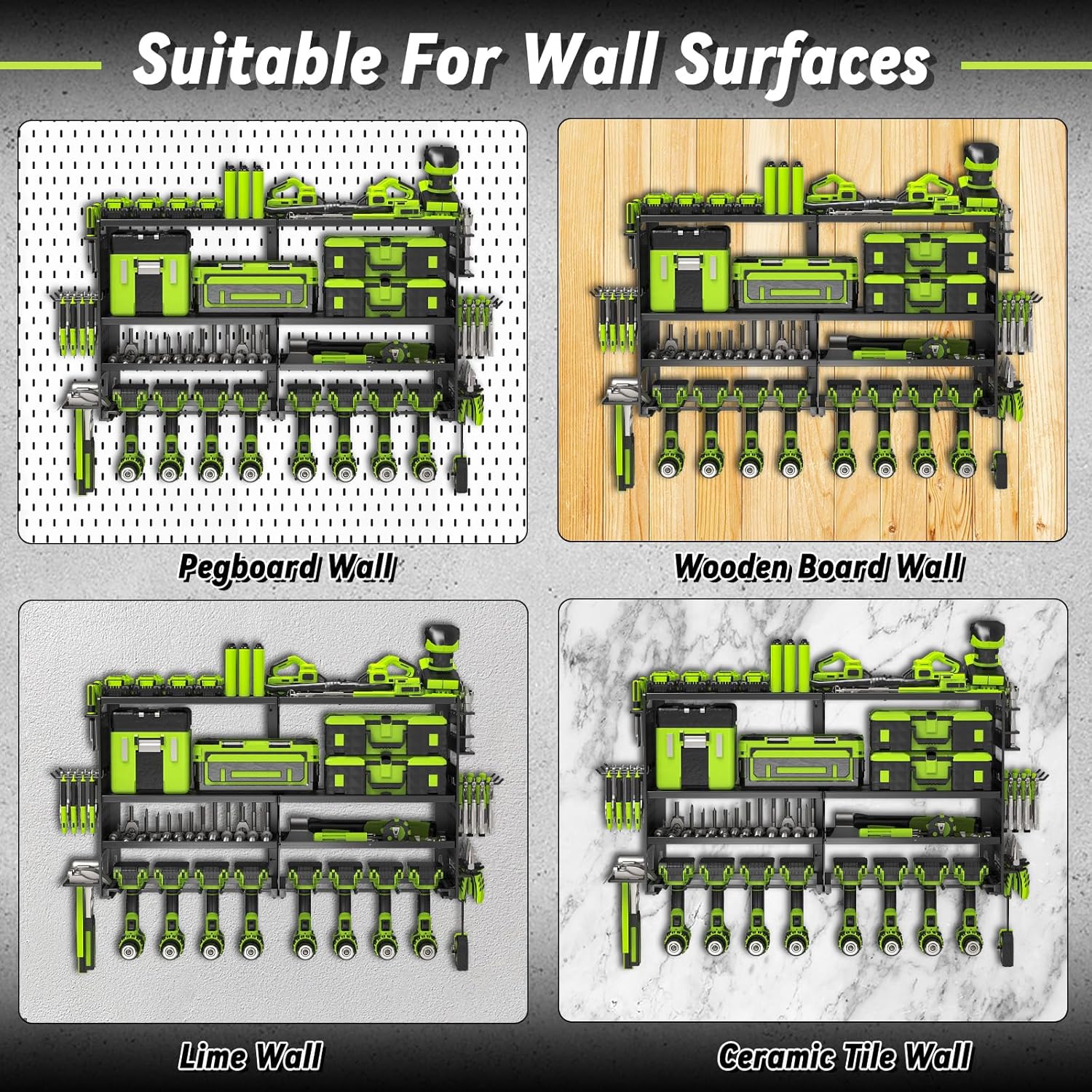 - 4 Layers Large Capacity:The garage tool holder can meet the needs of more than 50 kinds of tools placed, with a solid compartment can be placed in the screws and other small tools, the third layer of the heightened design is convenient for storing the tool box