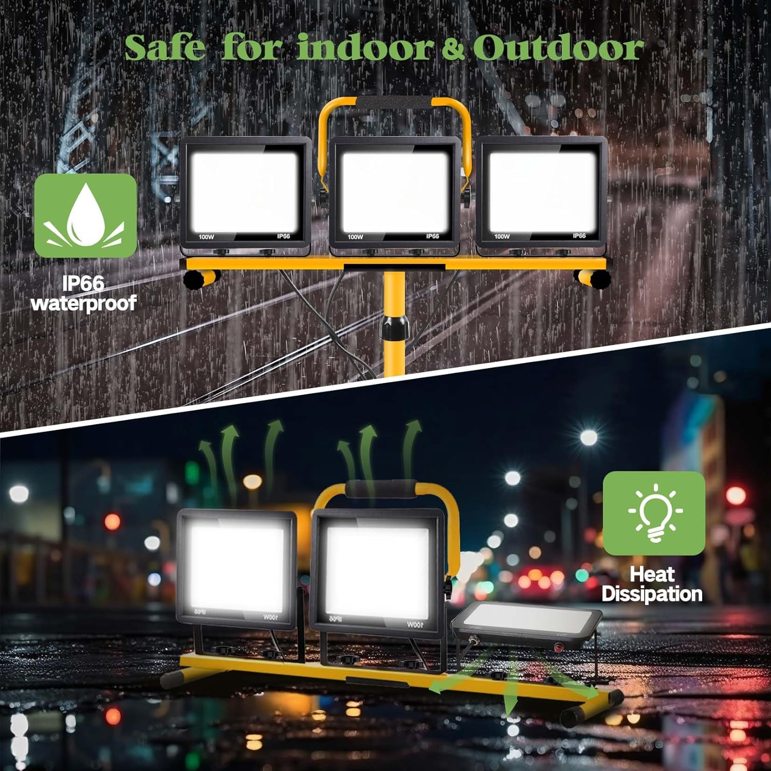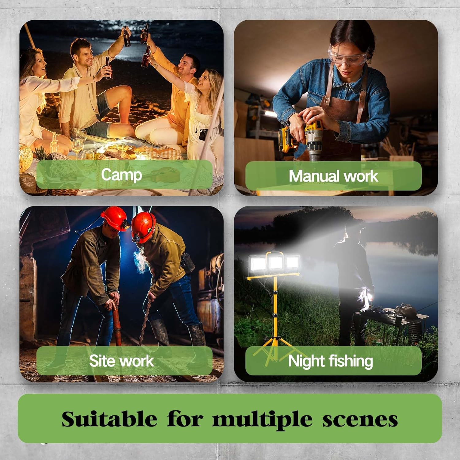 - 【DURABLE STRUCTURE】: Each lamp head is equipped with 84 super-powerful LED lamp beads. IP65 with waterproof silicone rubber collar added inside, makes the led tripod work light can be used in a humid environment, is not easy to age or damage, and extends the service life of the lamp;