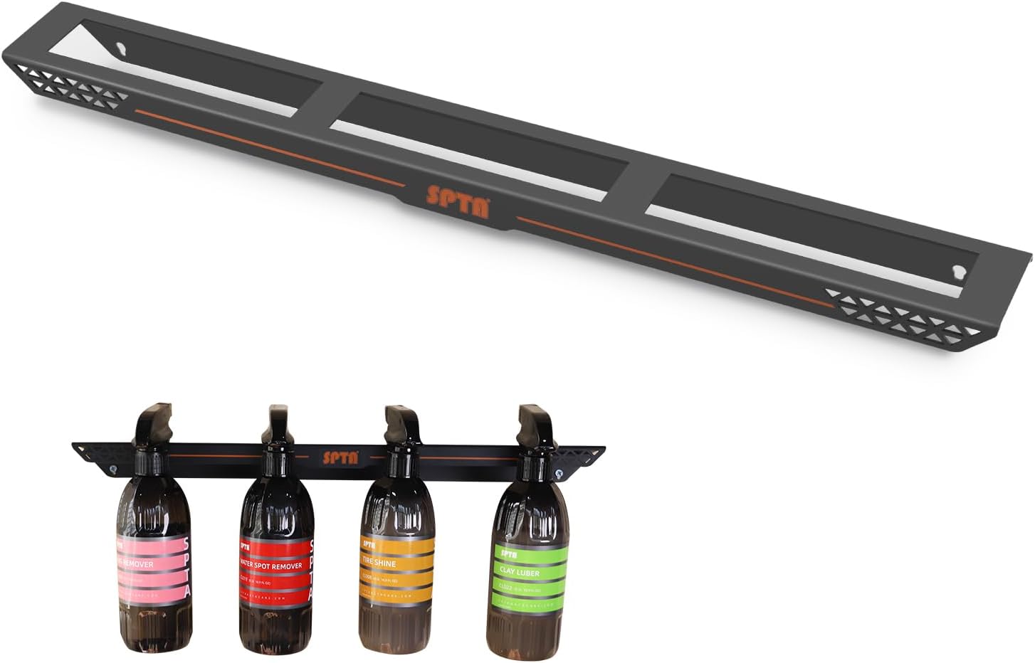 - MULTIFUNCTION AND GARAGE OR MOBILE USE:The Spray Bottle Hanging Rack not only holds spray bottles, but also provides comprehensive storage space with a sophisticated look. Ideal for both professional detailers and car enthusiasts, this holder is perfect for garage setups or on-the-go detailing, keeping your tools organized wherever you are.