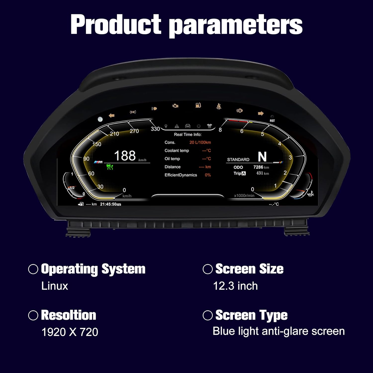 Speedometer Instrument for BMW F30 F36 2013-2020๏ผ12.3 inch Linux System Original Modern Car Odometer Information Head up Display Digital Cluster Electronic Gauge Dashboard Screen