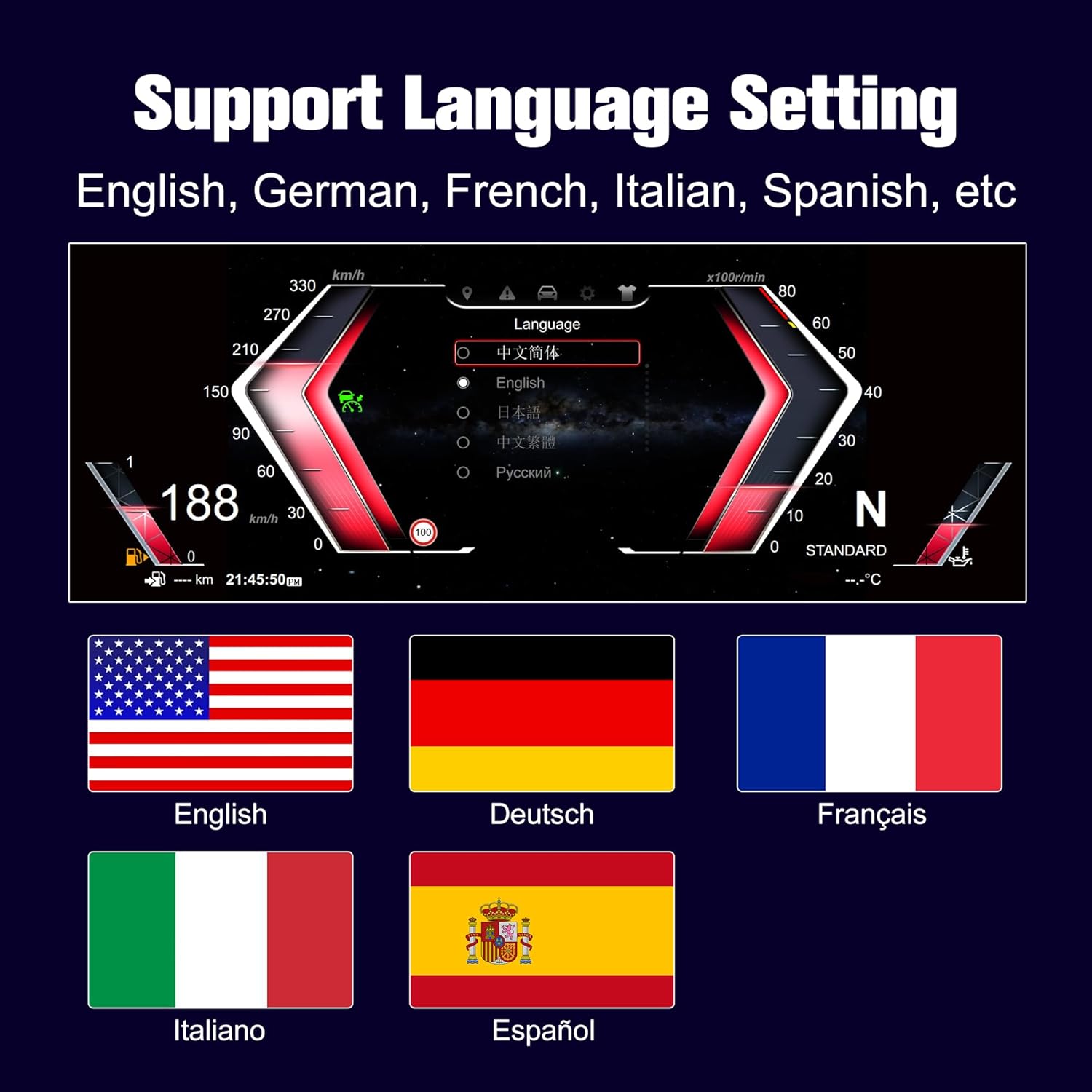 - ๐จ[Note] This digital display speedometer supports switching between miles and kilometers and offers support for eight languages. It also supports original car control and is compatible with the original car's cruise control function, this cluster doesn't support the HUD function