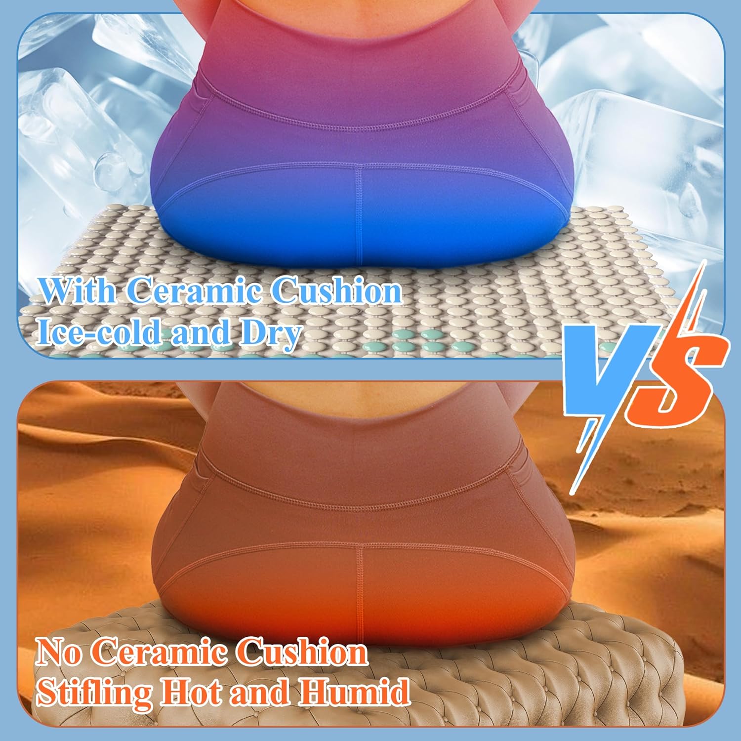 - 🌴【Cooling in one Second】🌴The infrared emissivity of ceramic materials is very high, more than 16 times higher than the infrared emissivity of metals such as aluminum and copper. This high emissivity allows ceramic materials to dissipate heat quickly by radiation, resulting cooling in one second,keeps you comfortably cool even after extended sitting.This makes our heat-resistant seat pad ideal for hot climates or those prone to sweating.