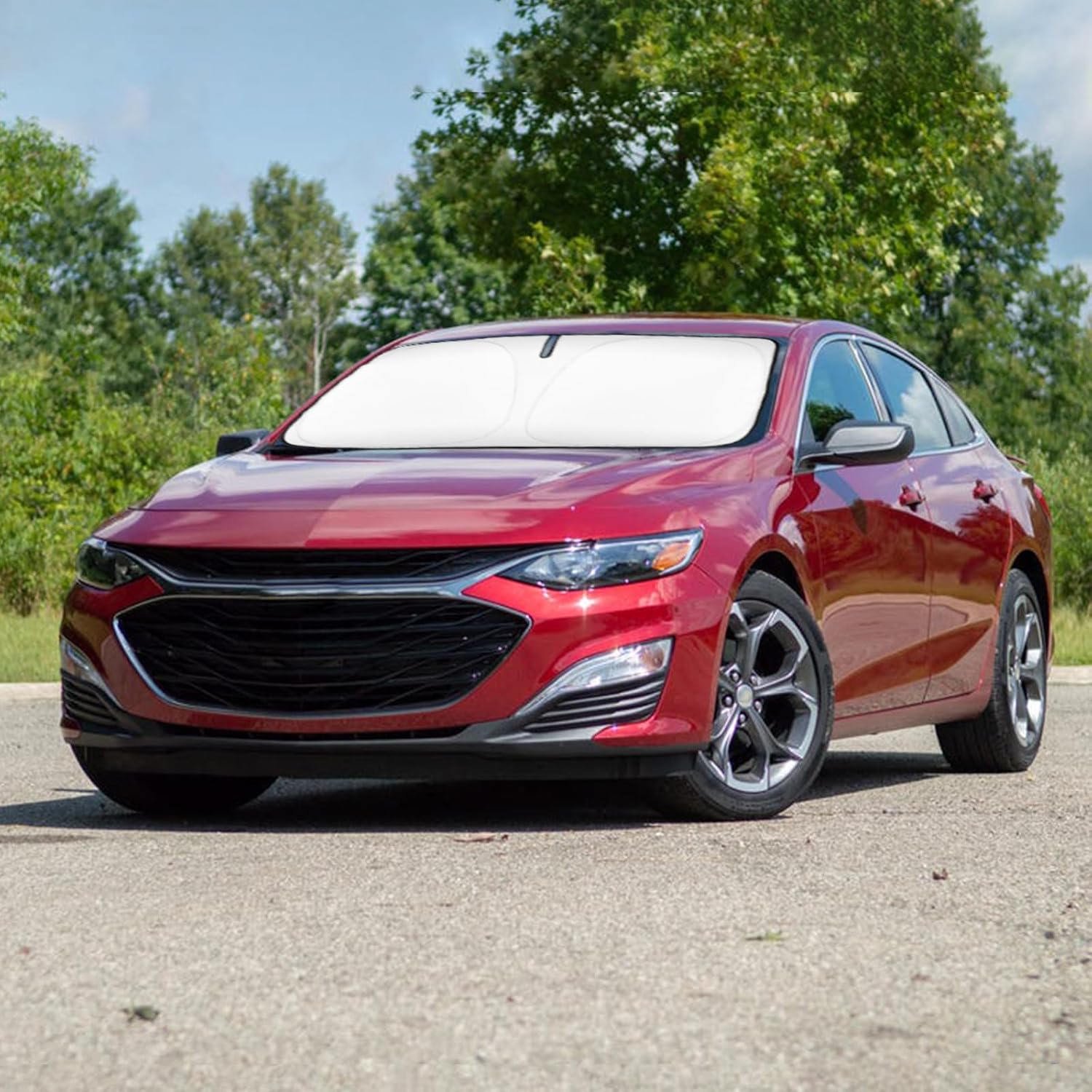 - ăVehicle SpecificăOur Windshield Shade Cover custom fit for Chevrolet/Chevy Malibu 2016-2024 2025 Accessories,Full covered your windshield,No Gap,100% Perfect fit. The precise fit design and reinforced steel ring are sufficient to allow the sun shade to precisely fit the front window without the need for suction cups to hold it in place, effectively protecting your car from the sun's rays.