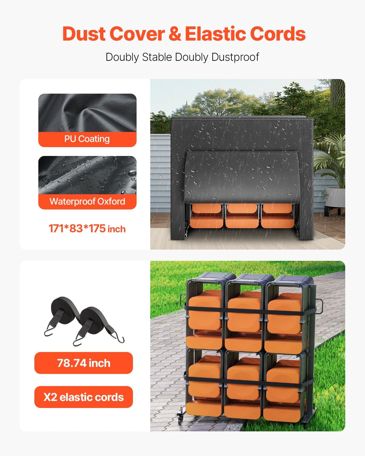 - Dust Cover and Elastic Cords: The elastic cords provide confident and stable movement, while the dust cover ensures chairs remain pristine during prolonged storage without being contaminated by dust.