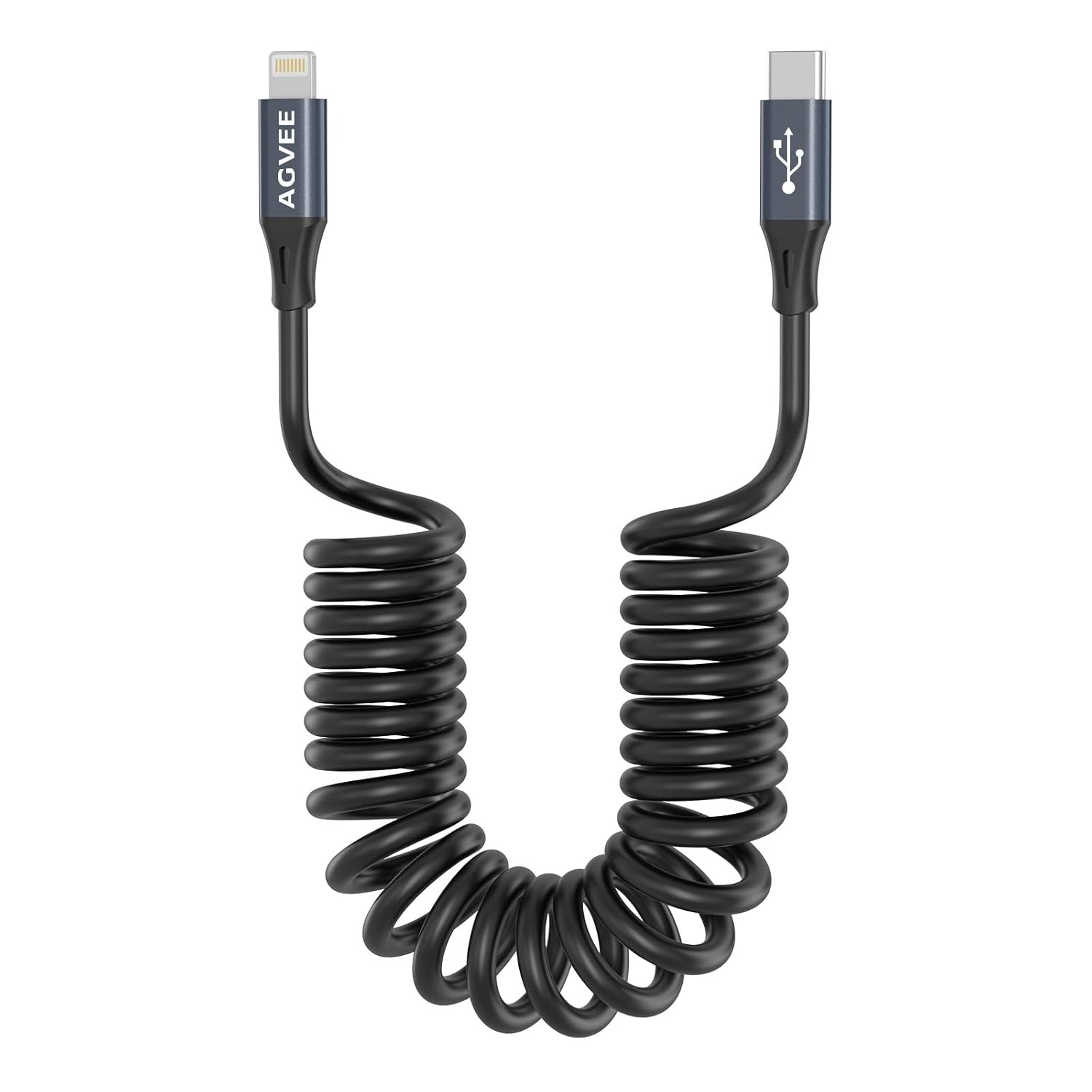 AGVEE 5ft Coiled Short USB-C to Lightning Charging Cable [MFI Certified] 30W PD Fast Charger Cord in Car for iPhone 14/13/12/11/XS/8/7/6/5 CarPlay, iPad, iPod, Dark Gray