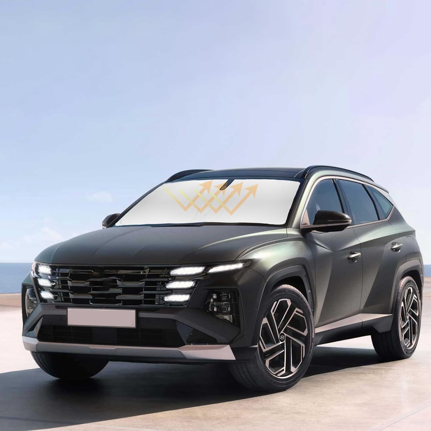 - ăVehicle SpecificăOur Windshield Shade Cover custom fit 2022-2024 2025 2026 Tucson for Hyundai Accessories ,Full covered your windshield,No Gap,100% Perfect fit. The precise fit design and reinforced steel ring are sufficient to allow the sun shade to precisely fit the front window without the need for suction cups to hold it in place, effectively protecting your car from the sun's rays.
