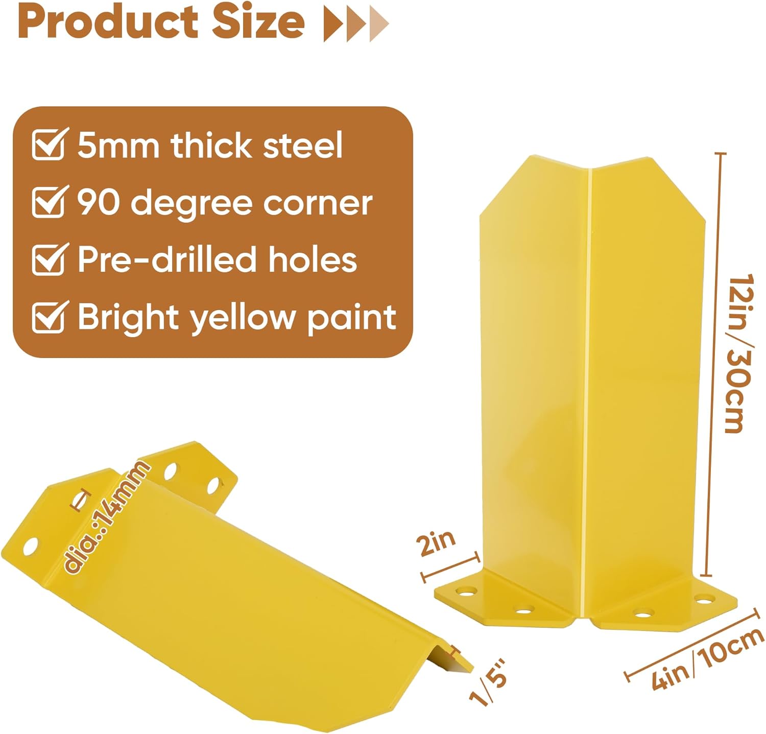 - Pallet Rack Post Protectors: Included 2 pallet racking guards and 10 mounting screws; Dimensions: 4" Wide x 4" Deep x 12" Height
