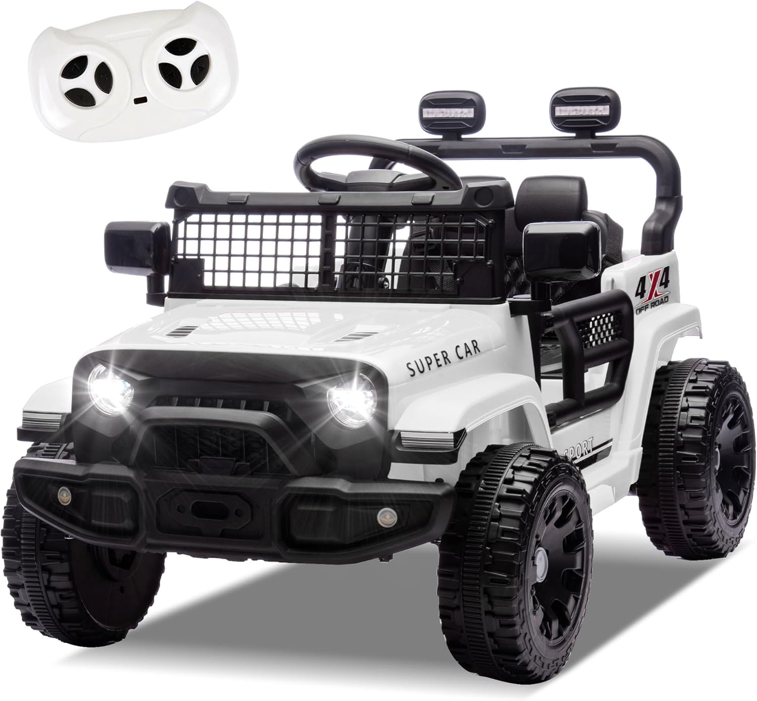 24V Ride on Toys with Parents Control, Ride on TruckCar with Four-Wheel Suspension, Electric Vehicles for Kids, PowerDisplay, Bluetooth, MP3, Music, LED Headlight, 1.86-3.11MPH (White)
