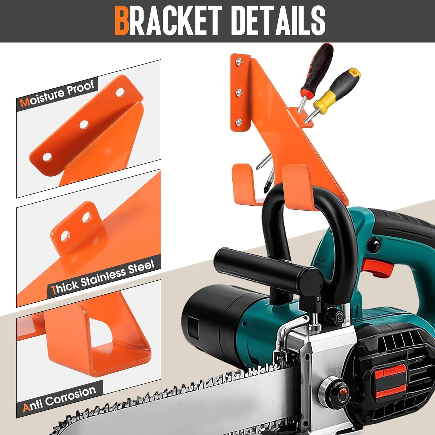 - ORGANIZE YOUR SPACE: Easy to install wall mounted chain saw bracket, fix your saw with this sturdy wall mounted bracket, greatly improve the storage space in your garage, shed, store or workshop. Especially for chain saw storage in a small workshop or tool room.