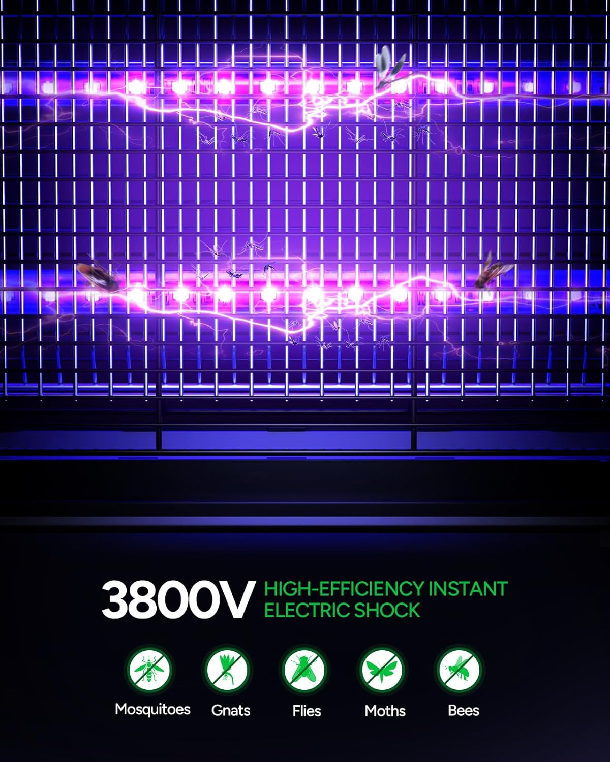 - Efficient and Safe: This electric bug zapper uses 3800V high-voltage physical electric shocks to kill bugs like mosquitoes, flies, moths, and gnats. It is equipped with a protective grill to avoid accidental contact by children and pets, making it a reliable bug-killing solution for indoor family use.
