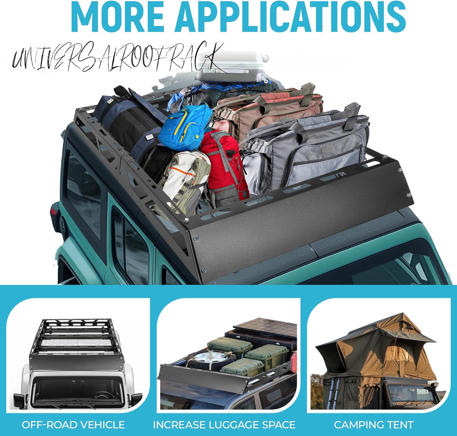 - Large Storage Space: Provide additional storage space on the roof of the vehicle. It is covenient to storage luggages and other things when you are going on a long journey or carrying a lot of things