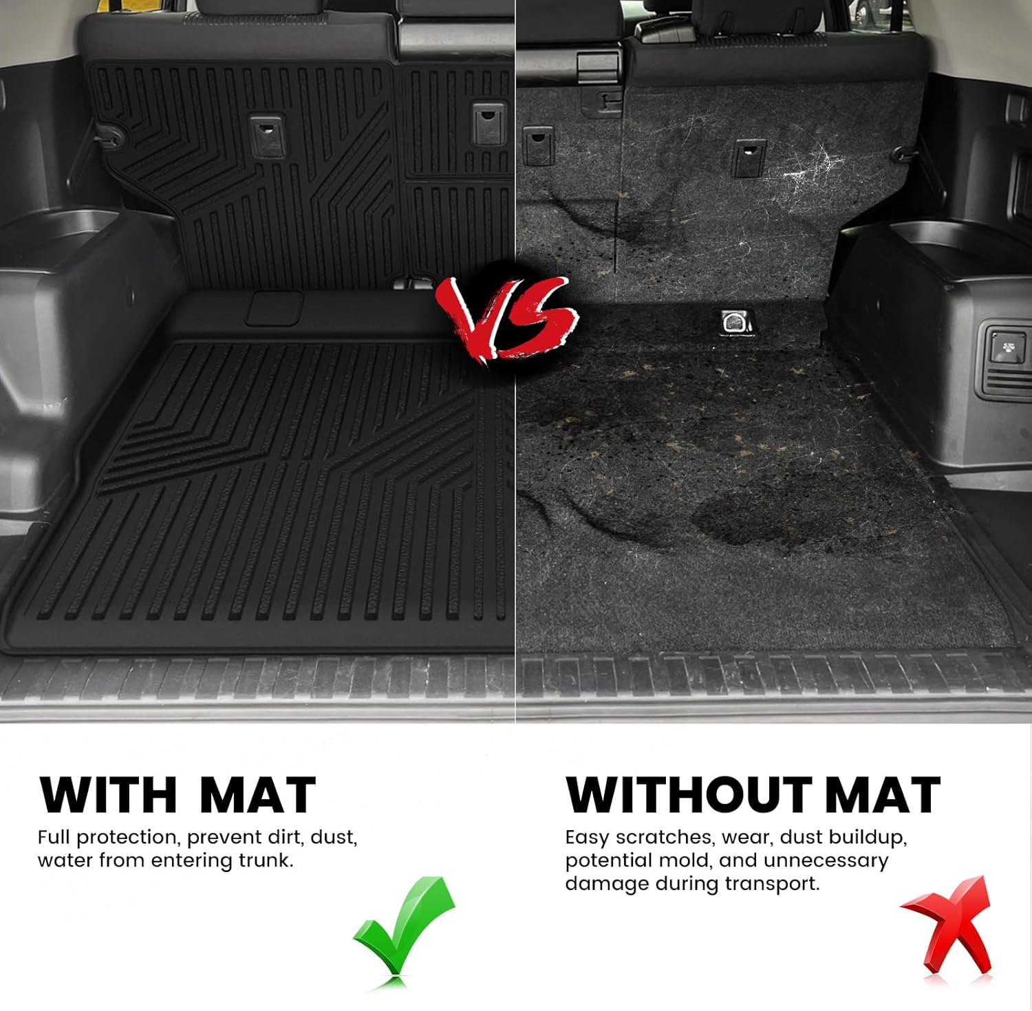 - FIRM YET FLEXIBLE - These durable 4runner Trunk&Seatback mats Raised edges all the way around and have been upgraded to the use of innovative material, allowing our floor liners to last long, and way more durable that they won't curl or end up buckling.