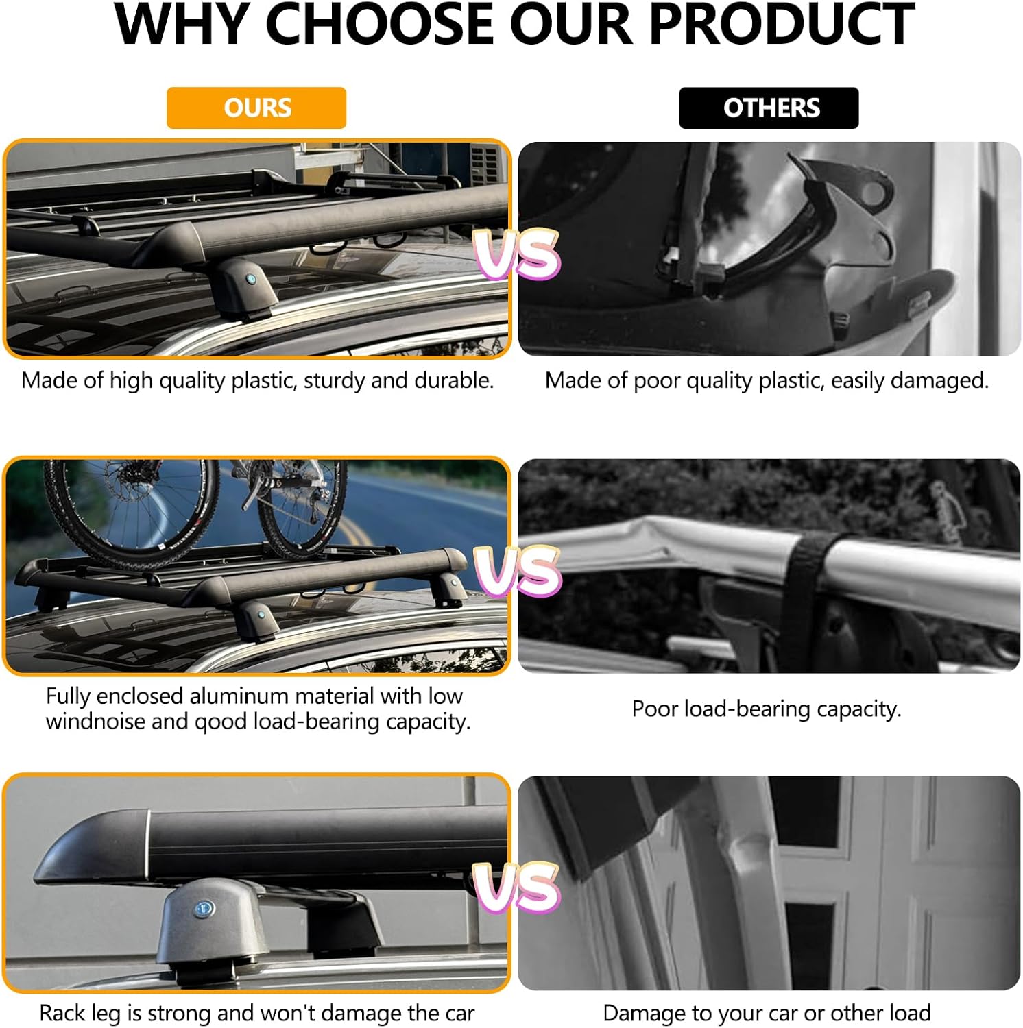 - Multifunctional Luggage Basket - Suitable for carrying various items such as luggage, bicycles, kayaks, etc. when camping, road trip or moving, which can enhance the capacity of your vehicle while ensuring safety and stability on the road
