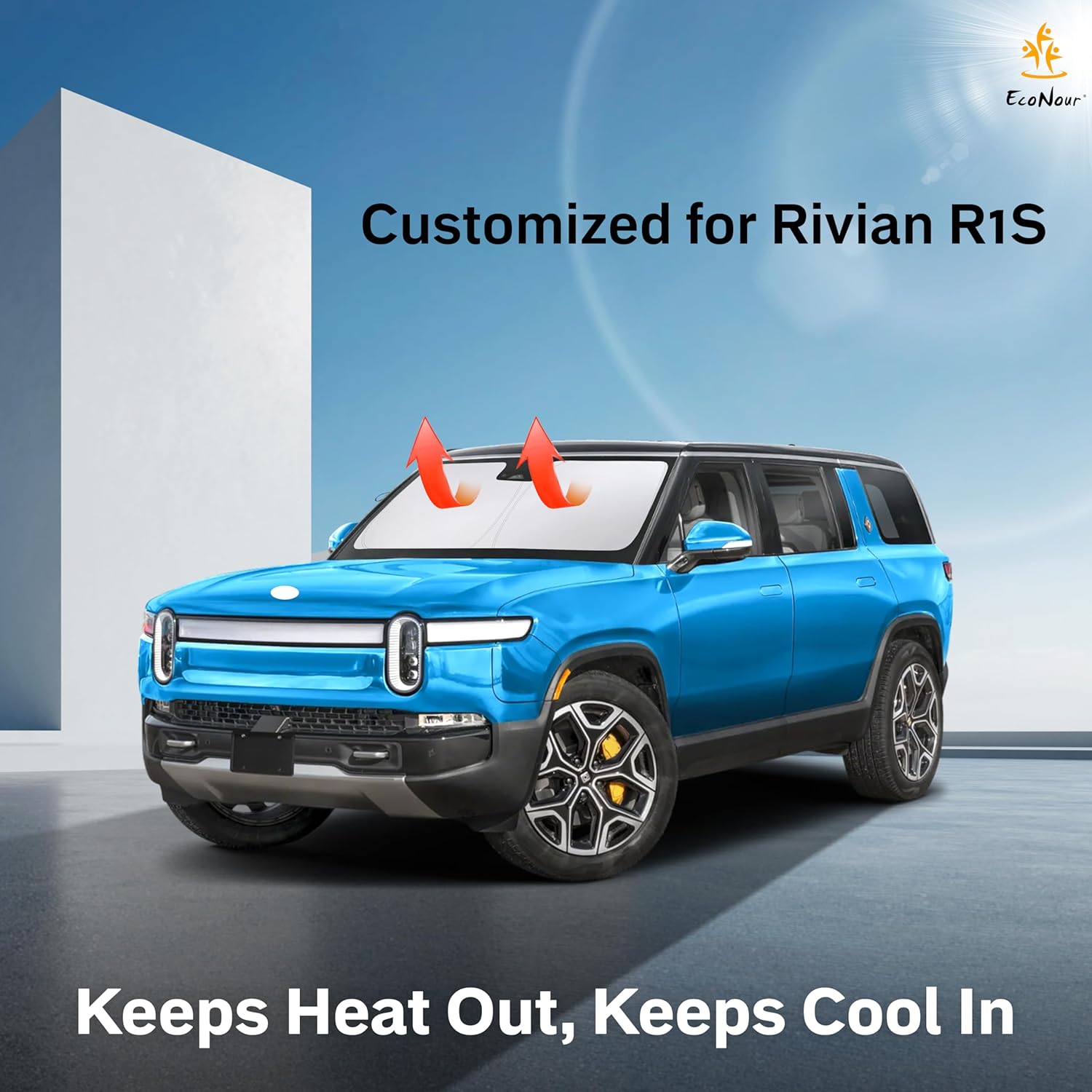 - Superior UV & Heat Protection â Made from premium 240T silver-coated polyester, this sunshade blocks harmful UV rays and deflects heat. It safeguards your R1Sâs dashboard, leather seats, touchscreen, and interior electronics from sun damage, cracking, fading, and warping, preserving the comfort and luxury of your electric SUV.
