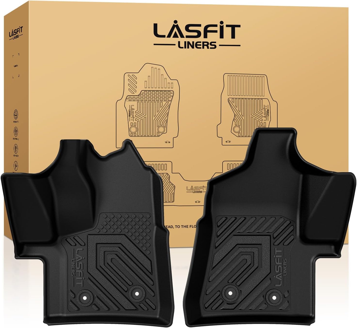 LASFIT Front Floor Mats for 2022-2025 Ford Transit 150/250/350/350HD with Vinyl Floor(Not Fit for Transit Connect) All Weather Protector TPE Car Floor Liners for Transit Vans, 1st Row Only, Black