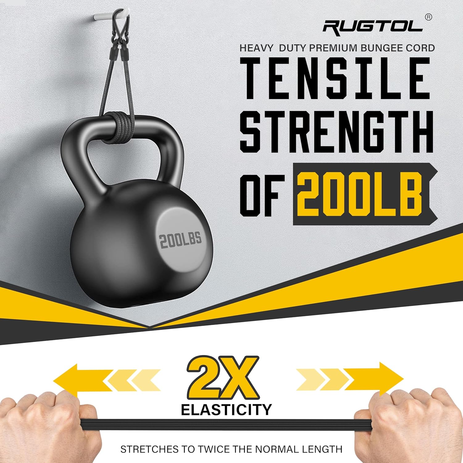 - Reliable 6 Pack Set: Rugtol 4 pack set of upgraded bungee cords is perfect for a variety of applications, such as securing bike racks, bicycles, cars, clotheslines, tent poles, roof racks, trailers, canoes, kayaks, camps, tents, tarps, and more, youโll have the flexibility and reliability you need for all your transport and organization needs.