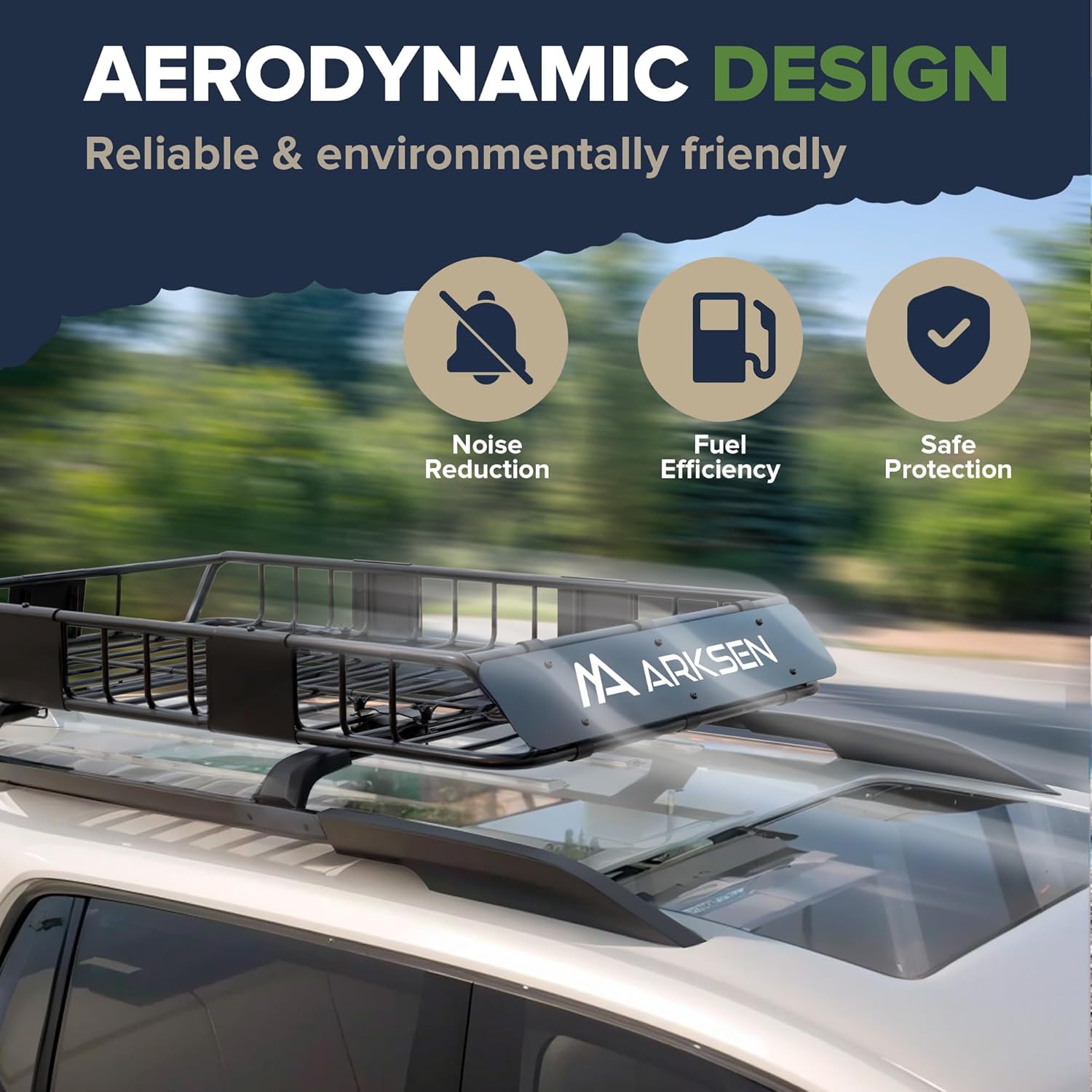 - Versatile Utility: Arksen roof rack is suitable for a variety of models such as Pickup, Off-road, SUV, MPV. Whether it's camping gear, luggage, firewood, or fishing/hunting equipment—this roof rack handles it all.The complete roof rack kit includes:1-600D PVC waterproof cargo bag,1 cargo net&2 ratchet straps