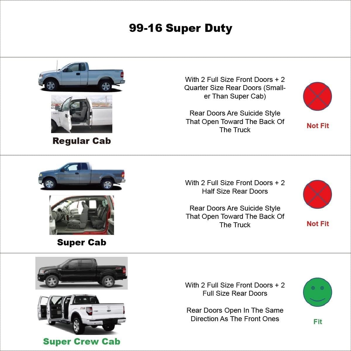- Material Acrylic : Vehicle Service Type for 1999-2016 ford F-250/F-350/F-450/F-550 Super Duty SuperCrew Cab with 4 full size doors for 1999-2016 ford F-250/F-350/F-450/F-550 Super Duty SuperCrew Cab with 4 full size doors See more
