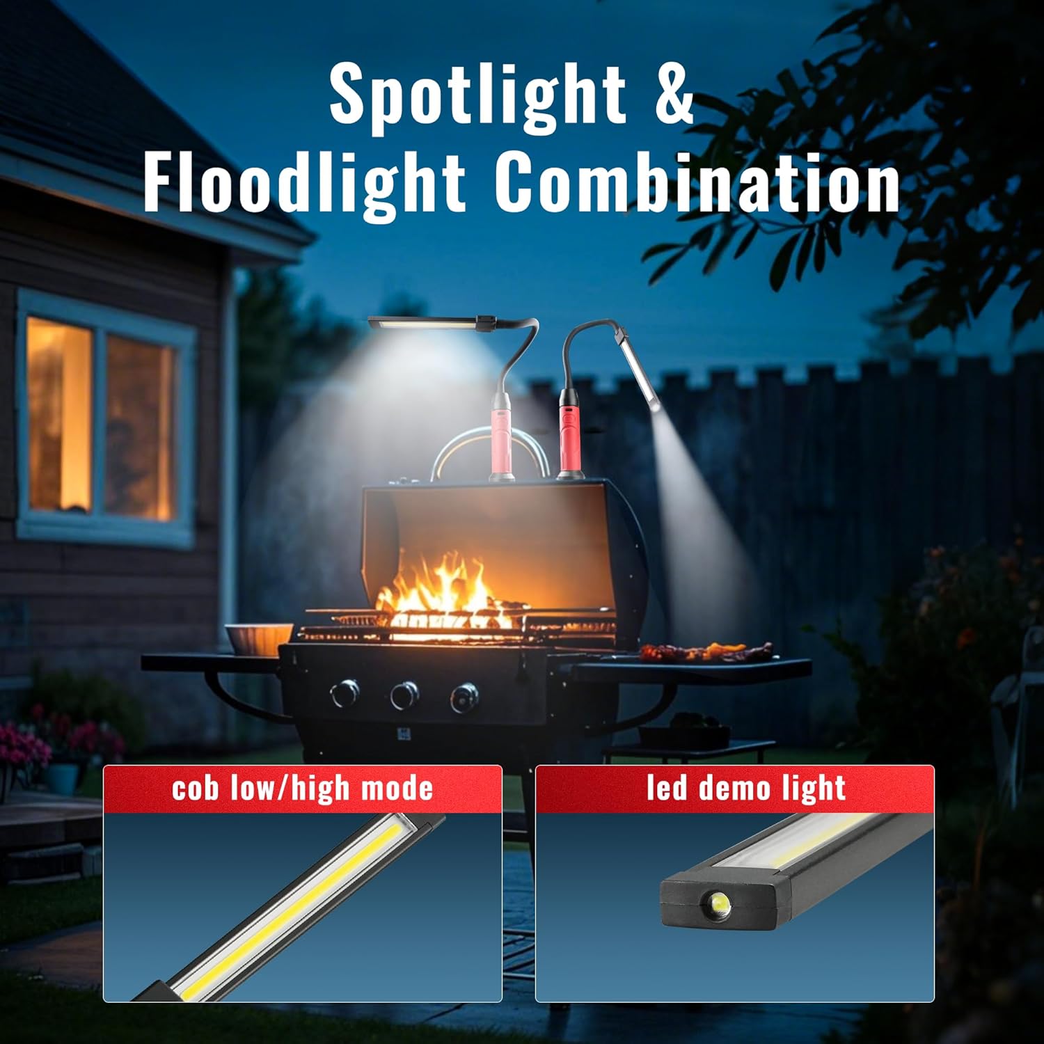 - 3 Lighting Modes: Switch between COB Low, COB High, and LED dome light, delivering up to 800 lumens of brightness. Use the spotlight for close-up tasks like small engine work or wiring, and the floodlight to light up your entire workbench, lathe or drill press