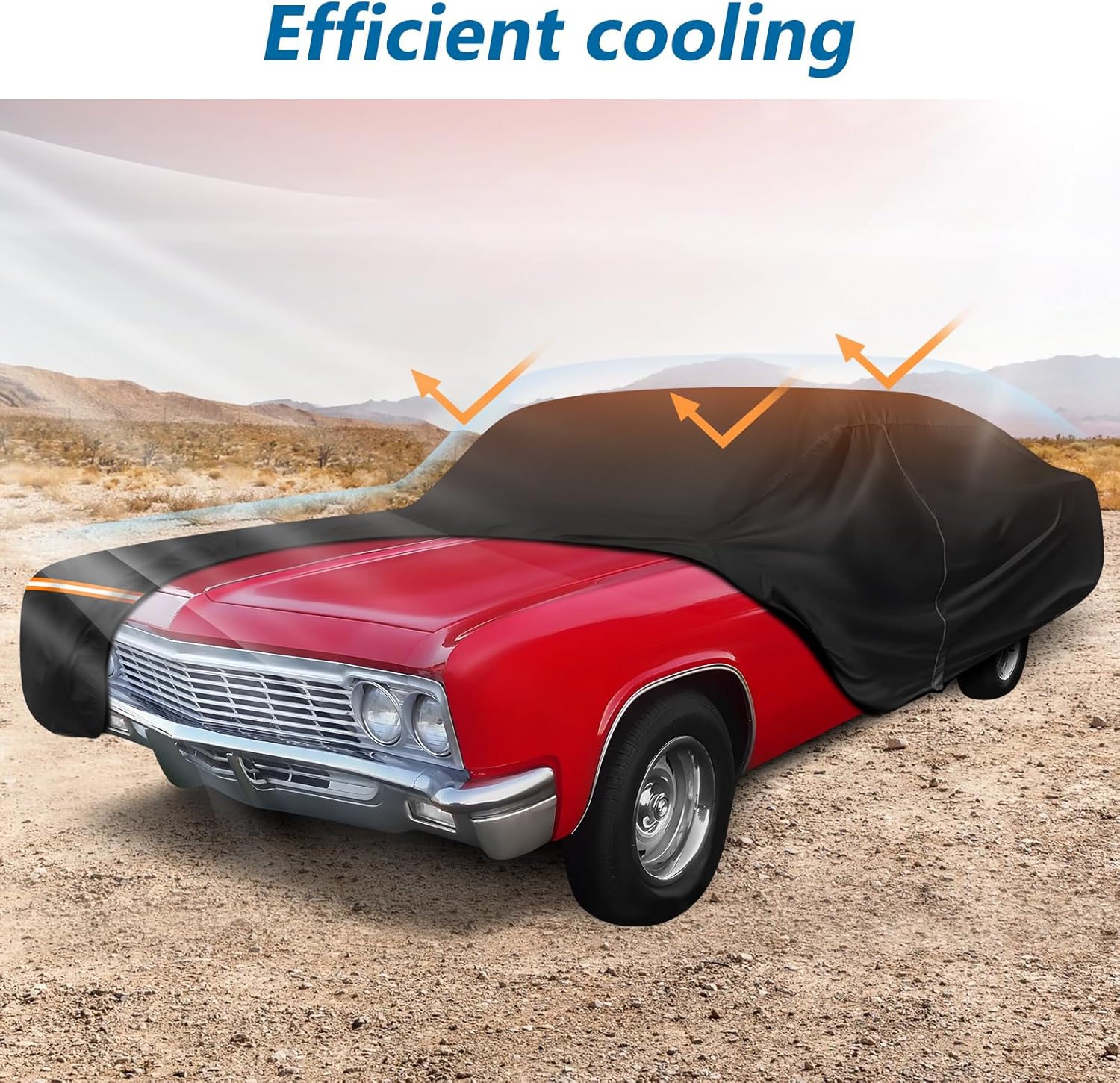 - ăUpgraded Windproof Design-Stay in Placeă*1. Four straps are used on the four wheels to make sure the cover stays in place. *2. A windproof buckle passes through the middle of the car. *3. Elastic hem at the bottom of front and rear to ensure the cover fits your car and to protect your car cover from blowing off, even in heavy wind. *4. There are two extra-long straps for the hood and rear wind protection.
