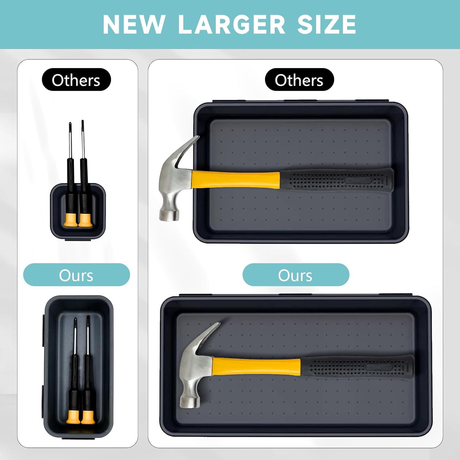 - [60 Pack & 5 Sizes] - Our tool box organizer bins include 60 trays:4 x XL size (12.5x6.2x1.77in), 8 x L size (9.25x6.2x1.77in), 12 x M size(9.25x3x1.77in), 10 x S size(6.2x3x1.77in), 26 x XS size(3x3x1.77in).