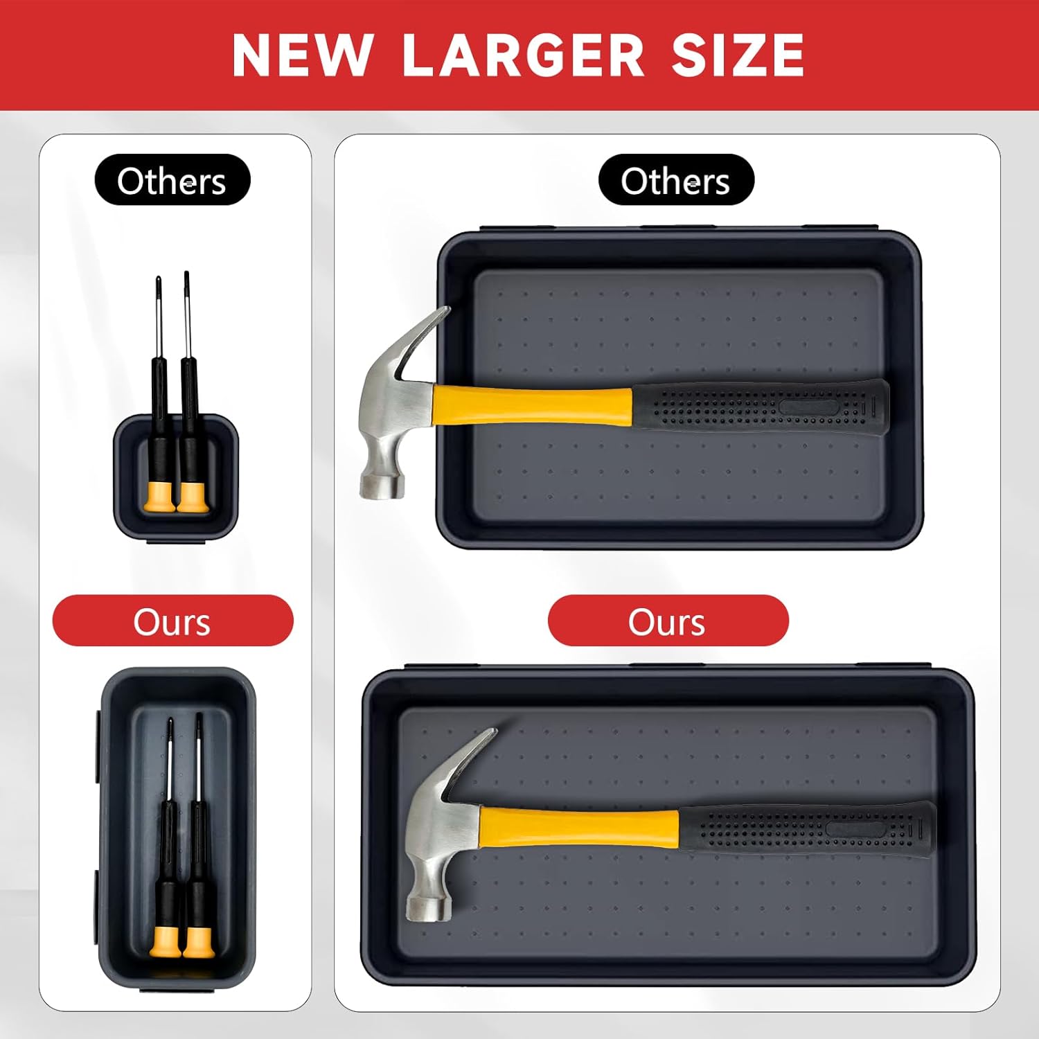 - [60 Pack & 5 Sizes] - Our tool box organizer bins include 60 trays:4 x XL size (12.5x6.2x1.77in), 8 x L size (9.25x6.2x1.77in), 12 x M size(9.25x3x1.77in), 10 x S size(6.2x3x1.77in), 26 x XS size(3x3x1.77in).