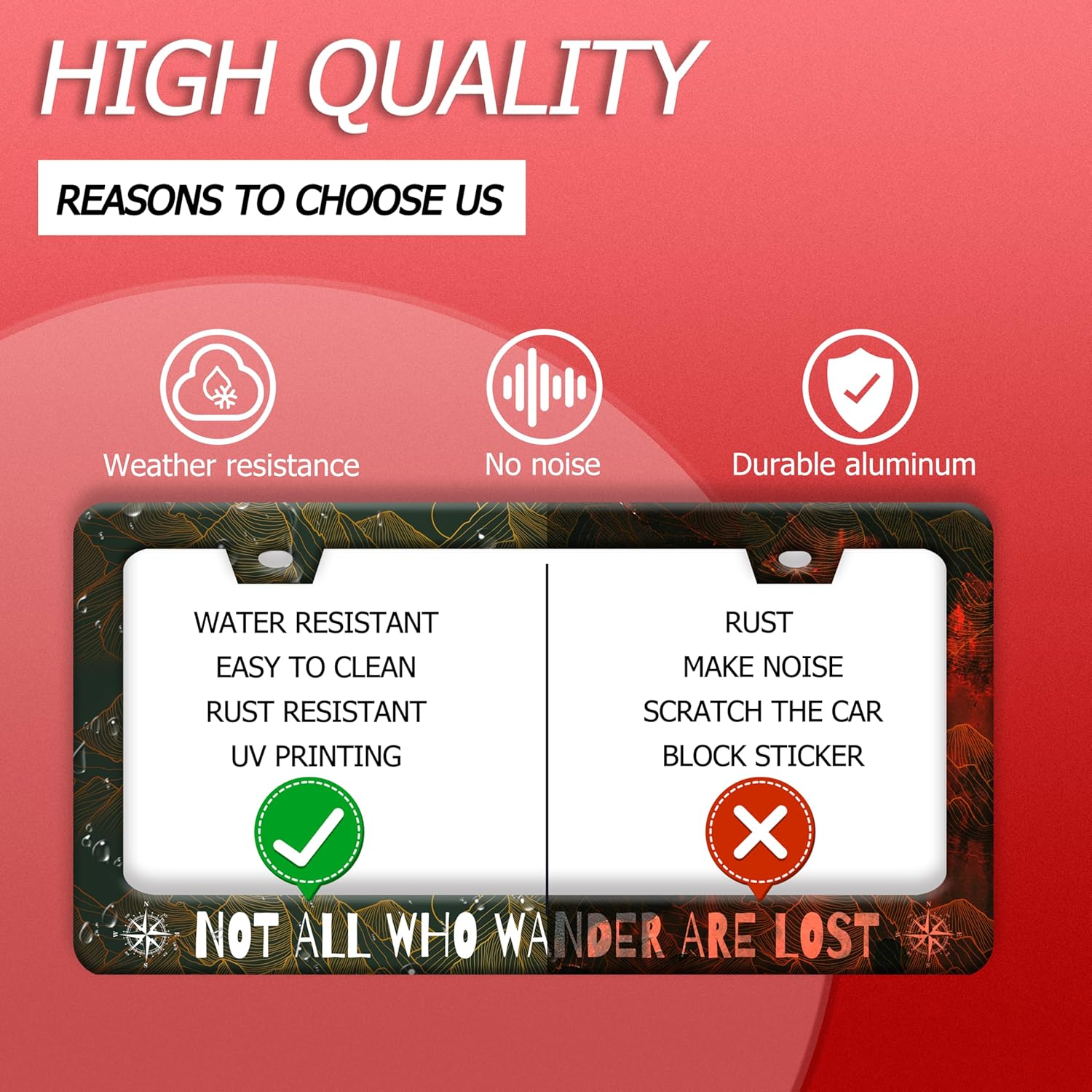 - 【Material】Our License Plate Frame Is Made Of Stainless Steel, Strong And Durable.