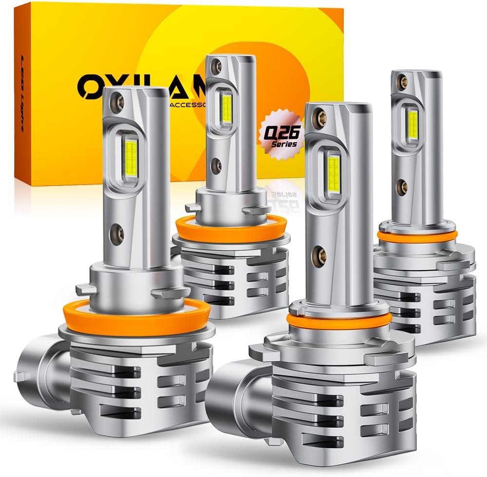 - 60,000HRS LONGER LIFESPAN: OXILAM Q26 H11 9005 bulbs combo use less power than halogen bulbs which means produce less heat. These LEDs are equipped with a whole aluminum body and temperature control element for continuous lighting without damage shortly. Save money in the long run and provide peace of mind knowing that your lights are less likely to burn out