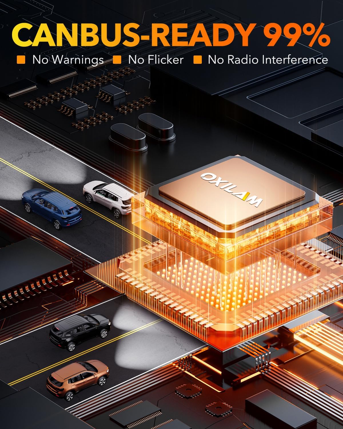 - 99% Vehicles Compatible: With the built-in latest linear intelligent IC driver, OXILAM H11/H9/h8 9005/HB3 LED bulbs are designed to work seamlessly with 99% of vehicles, without flickering, radio interference, or error codes on the dashboard. Note: In rare cases of compatibility issues, our team is here to provide additional decoders for a perfect fit