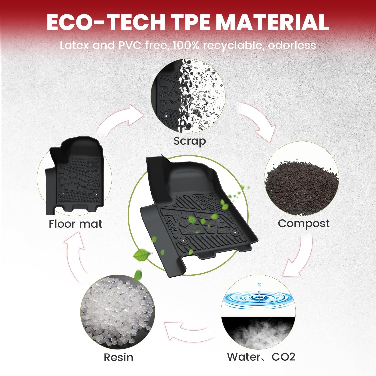 - ăDurable & Safe MaterialăLASFIT all weather floor mats for GMC Sierra EV use elastic TPE (Thermoplastic Elastomer), no foul odor is produced even at high temperatures, soft touch and exquisite finish. The LASFIT floor mats for cars are skid-proof and recyclable.
