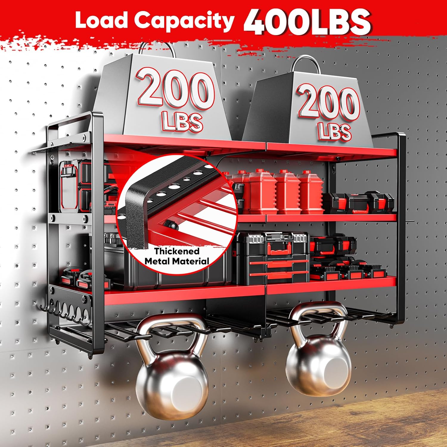 - Holds Up to 400 Pounds: Built from thick industrial-strength steel, our tool organizers and storage is engineered for maximum strength and stability. The rugged frame wonât warp, crack, or collapse under pressure. With a total load capacity of 400 pounds, it easily supports everything from compact drills to heavy toolboxesâgiving you peace of mind and rock-solid performance.