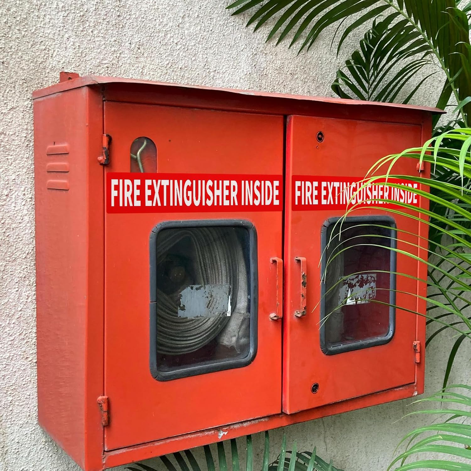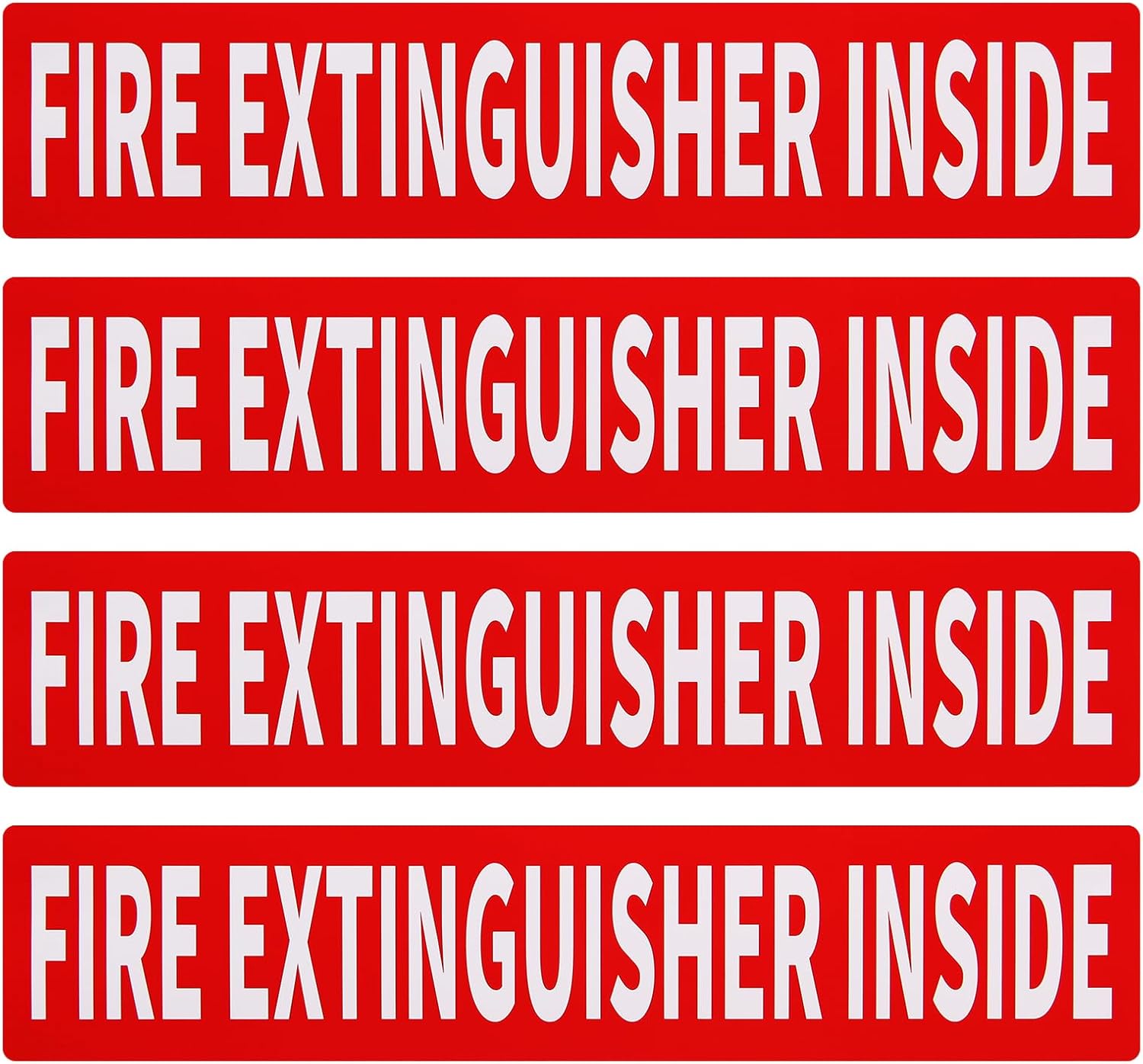 Madrigal Fire Extinguisher Inside Sticker Sign,4Pack 12x2.5" Self-Adhesive Vinyl, Weatherproof & UV Protected for Cars, Trailers, Rv's, Trucks and Vehicles, Red on White
