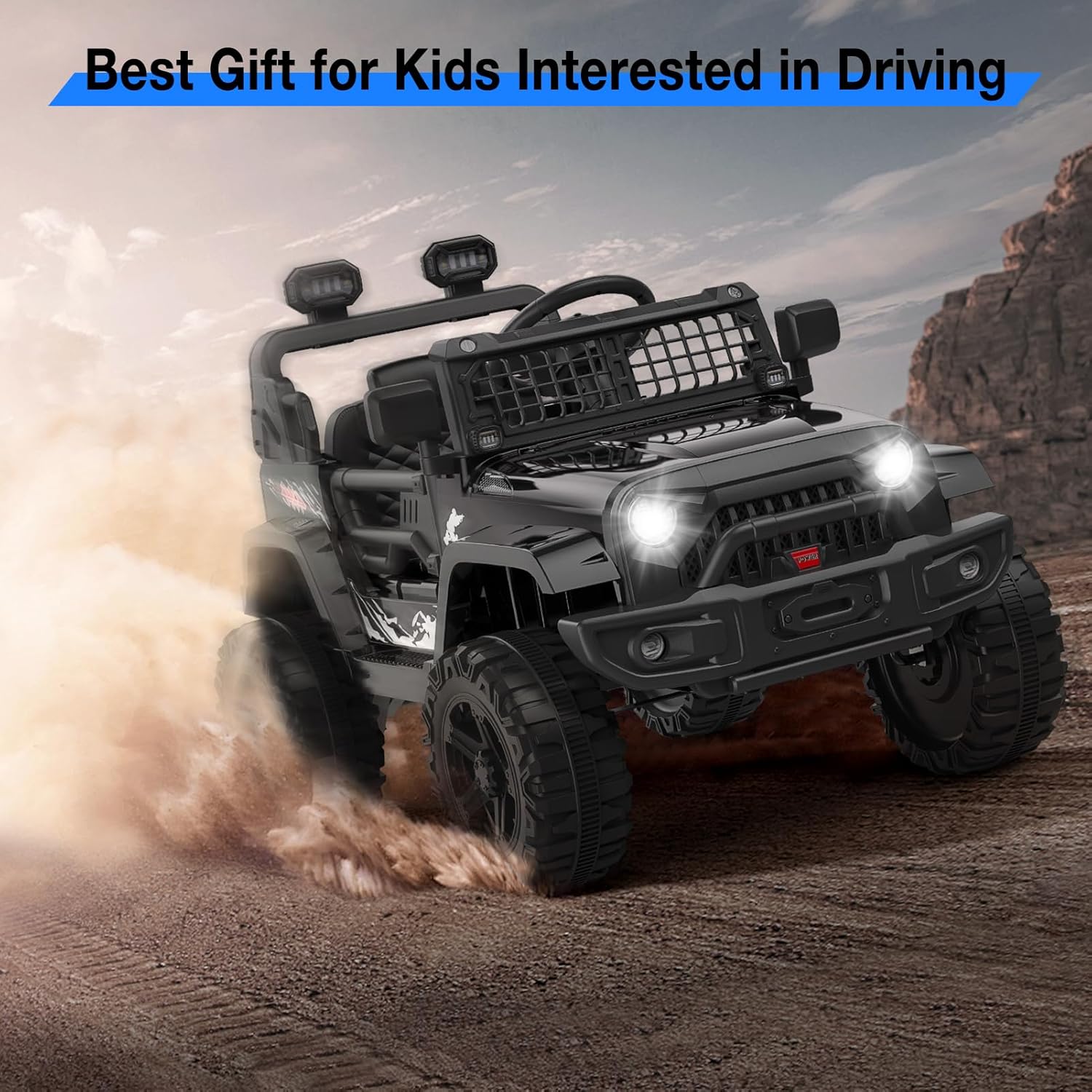 - β‘ 12V Power & All-Terrain Performance: High-torque 12V motor with puncture-proof tires conquers grass/concrete/driveways. LED headlights ensure nighttime visibility.