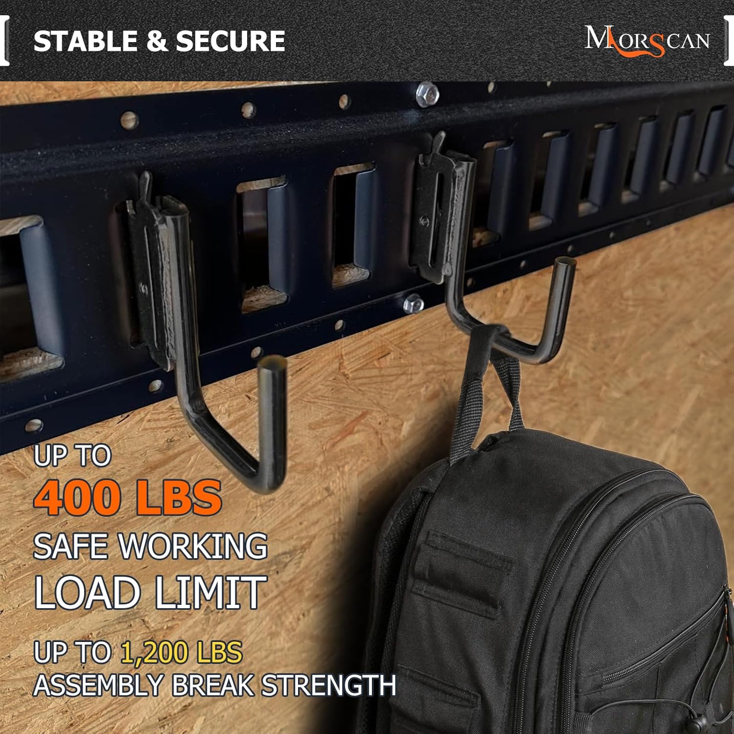 - HEAVY DUTY HOOKS - Strong hooks fit for all E Track/X Track trailer tie-down rails or E port single slots. With 2" inner clearance, 400 pound working load limit, 1,200 pound break strength.