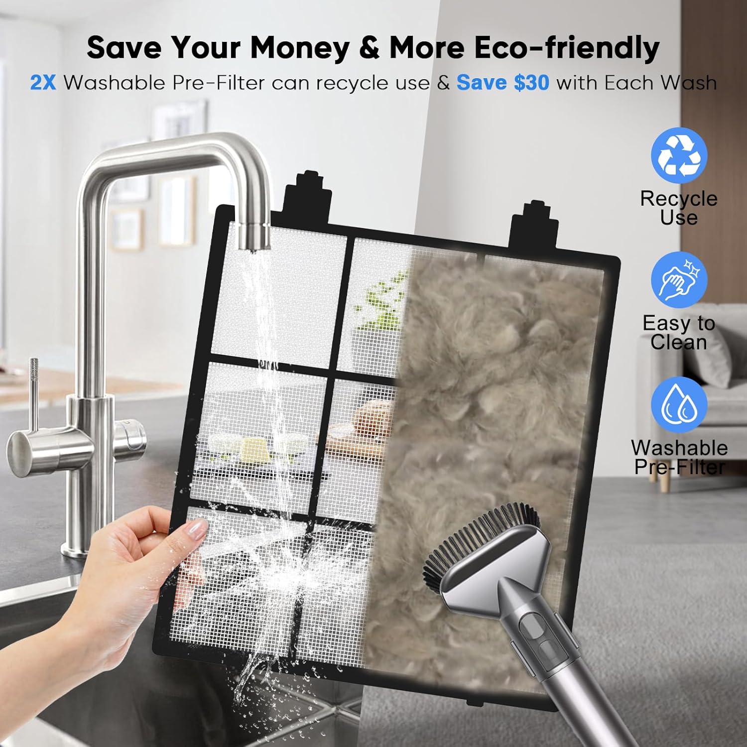 - 【𝐂𝐨𝐧𝐯𝐞𝐧𝐢𝐞𝐧𝐭 𝐖𝐚𝐬𝐡𝐚𝐛𝐥𝐞 𝐏𝐫𝐞-𝐅𝐢𝐥𝐭𝐞𝐫】 The removable and washable fine-mesh pre-filter acts as the first line of defense against pet fur, dander, hair, fibers, and larger airborne particles indoors. It's easy to clean by washing or vacuuming, helping to prolong the True HEPA14 Filter's lifespan. We're committed to creating a healthy and comfortable environment by providing fresh air for your home.